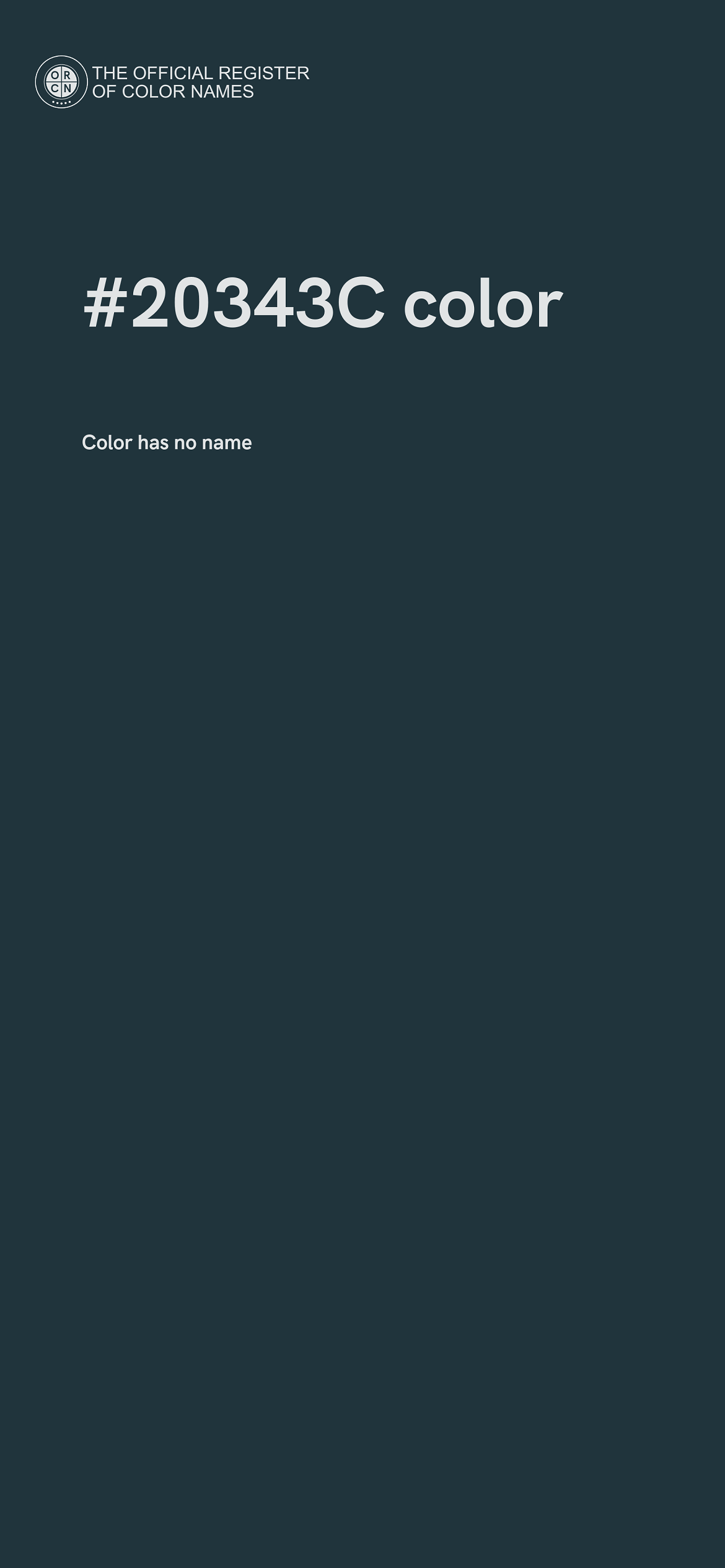 The digital color HEX #20343C belongs to the Azure Color Family featuring Mild Saturation (Saturation Family) and Dark (Brightness Family).