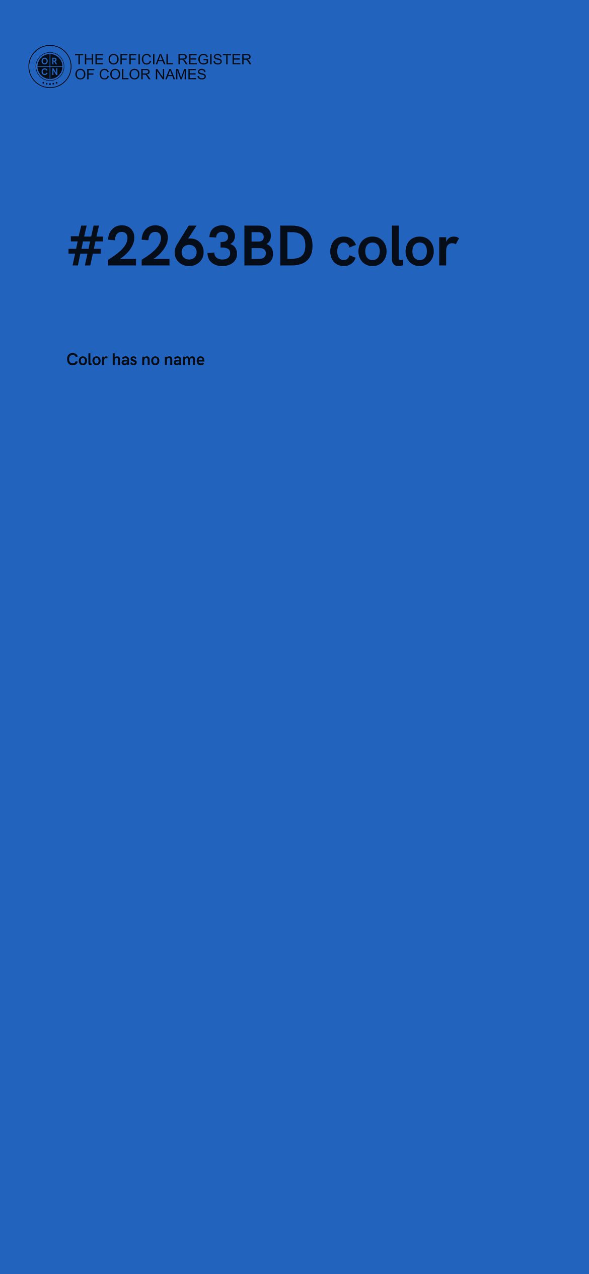 The digital color HEX #2263BD belongs to the Azure Color Family featuring High Saturation (Saturation Family) and Light (Brightness Family).