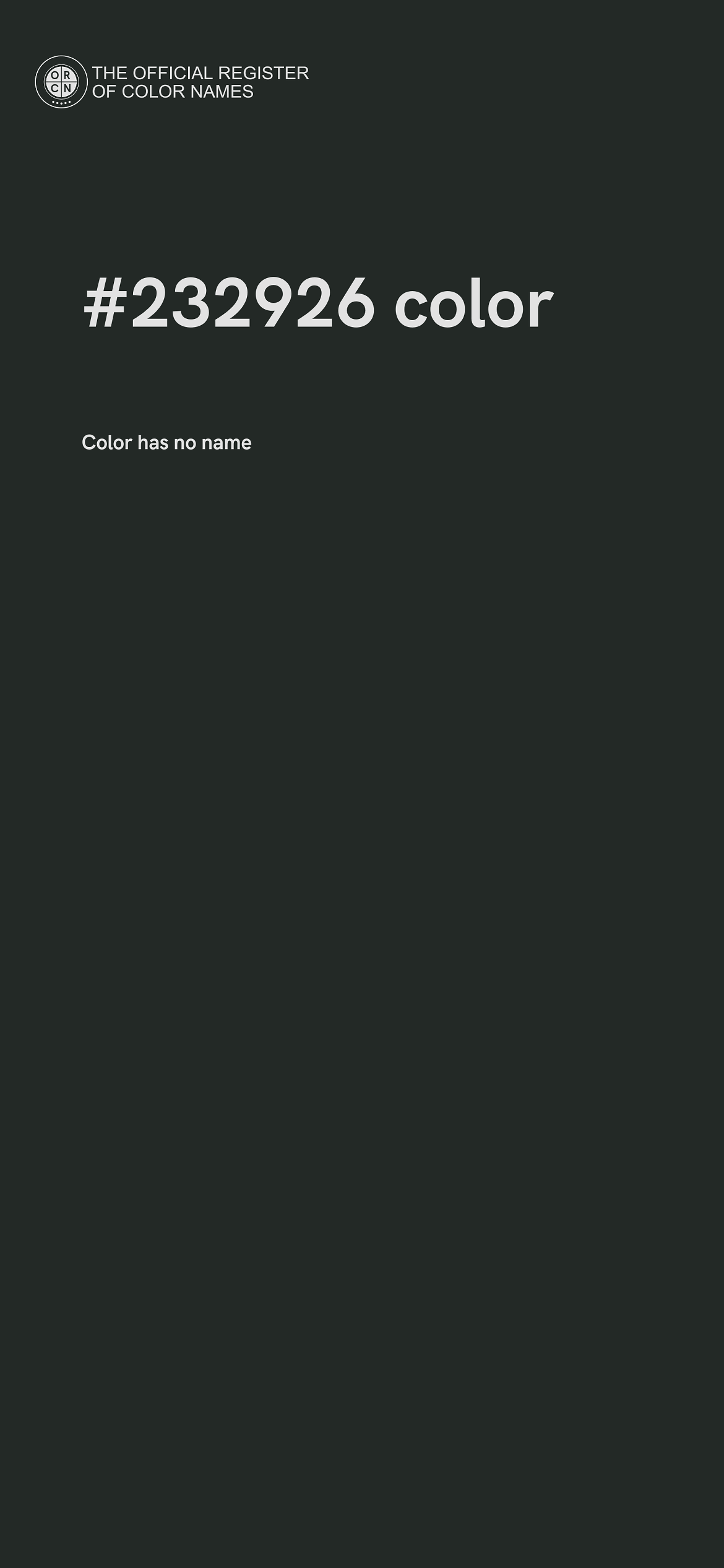 The digital color HEX #232926 belongs to the Spring Green Color Family featuring Desaturated (Saturation Family) and Dark (Brightness Family).