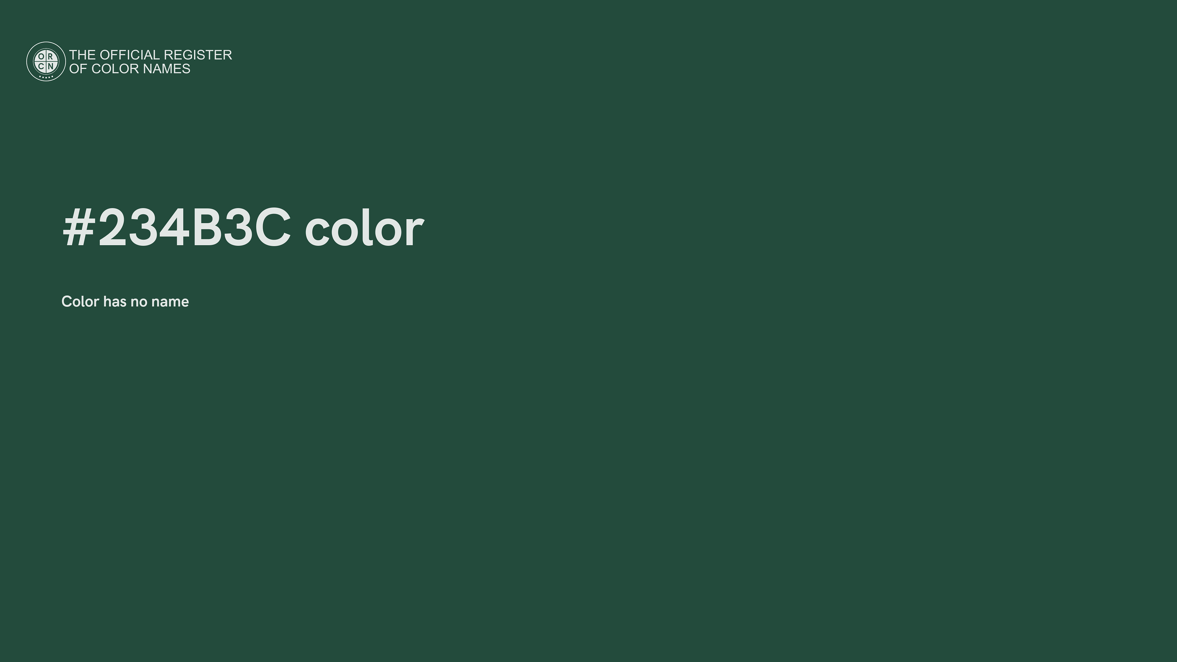 The digital color HEX #234B3C belongs to the Spring Green Color Family featuring Mild Saturation (Saturation Family) and Dark (Brightness Family).