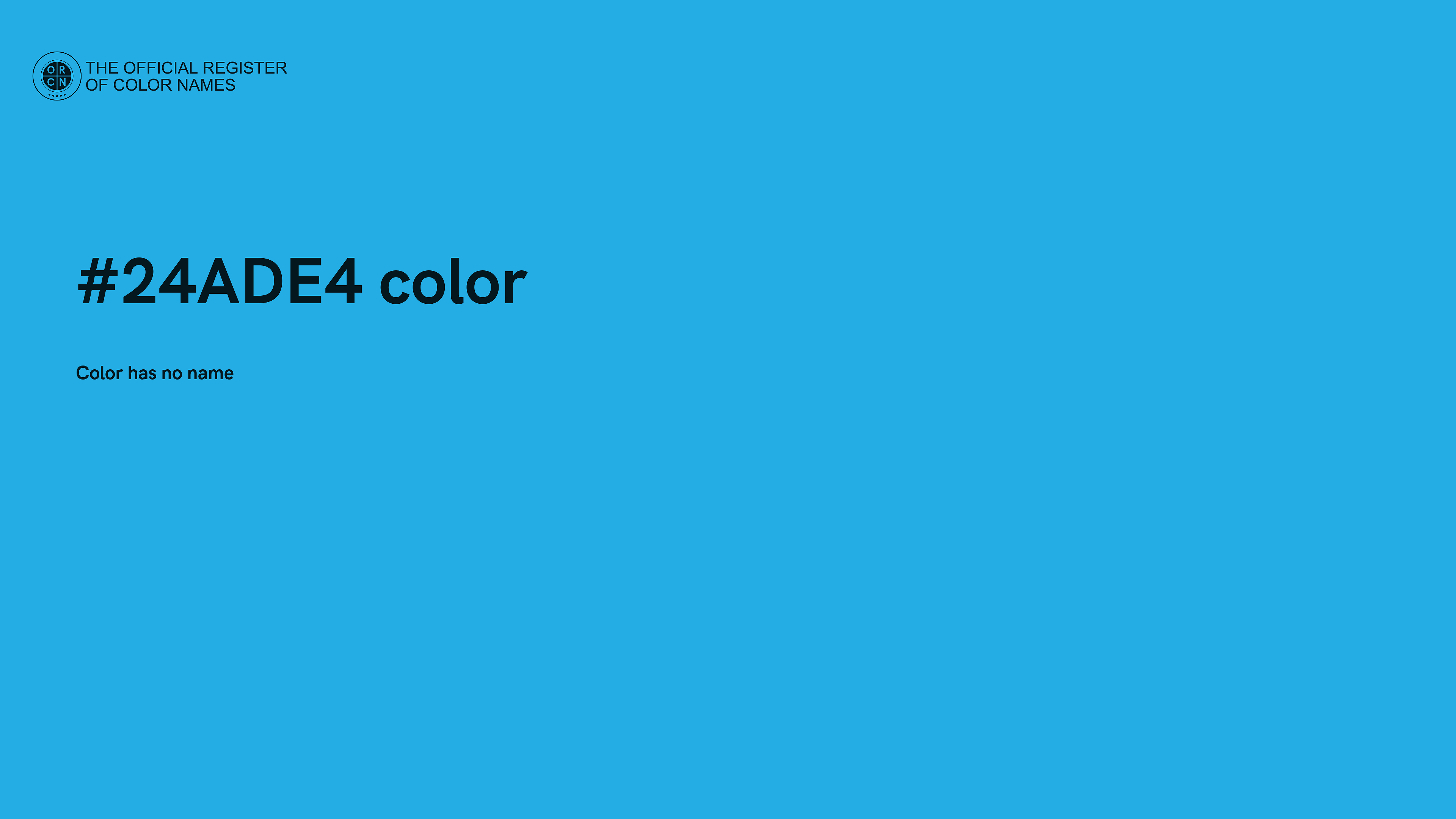 The digital color HEX #24ADE4 belongs to the Azure Color Family featuring High Saturation (Saturation Family) and Light (Brightness Family).