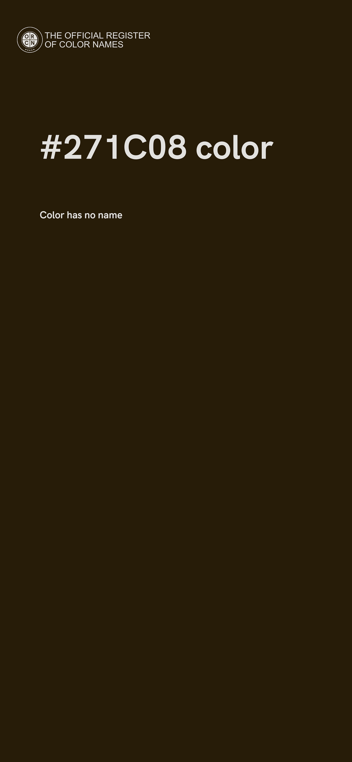 For printing in non digital world, #271C08 is represented in CMYK as 0 Cyan, 4 Magenta, 12 Yellow, and 85 Black (Key) (C:0 M:4 Y:12 K:85).