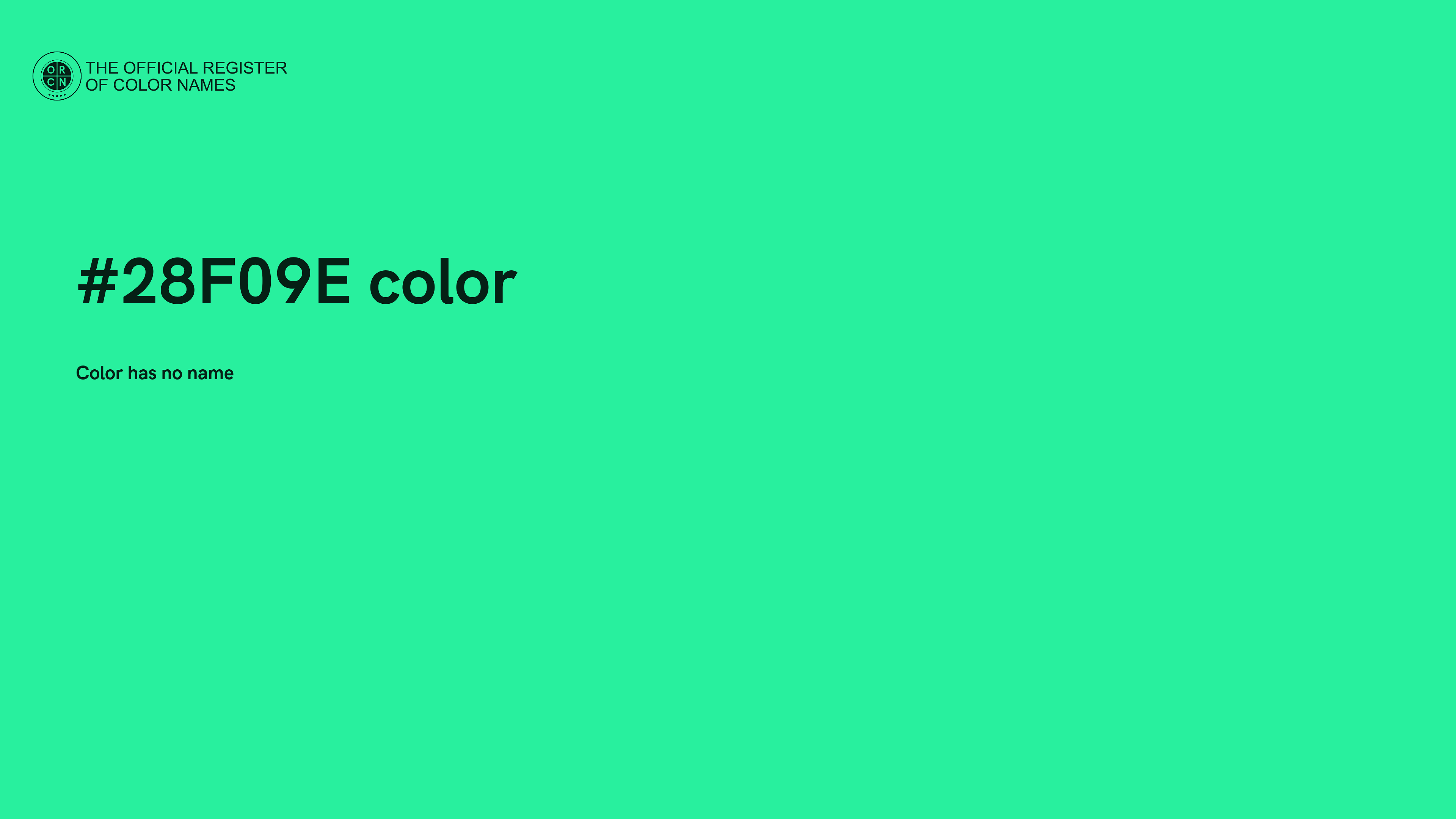 The digital color HEX #28F09E belongs to the Spring Green Color Family featuring Full Saturation (Saturation Family) and Light (Brightness Family).