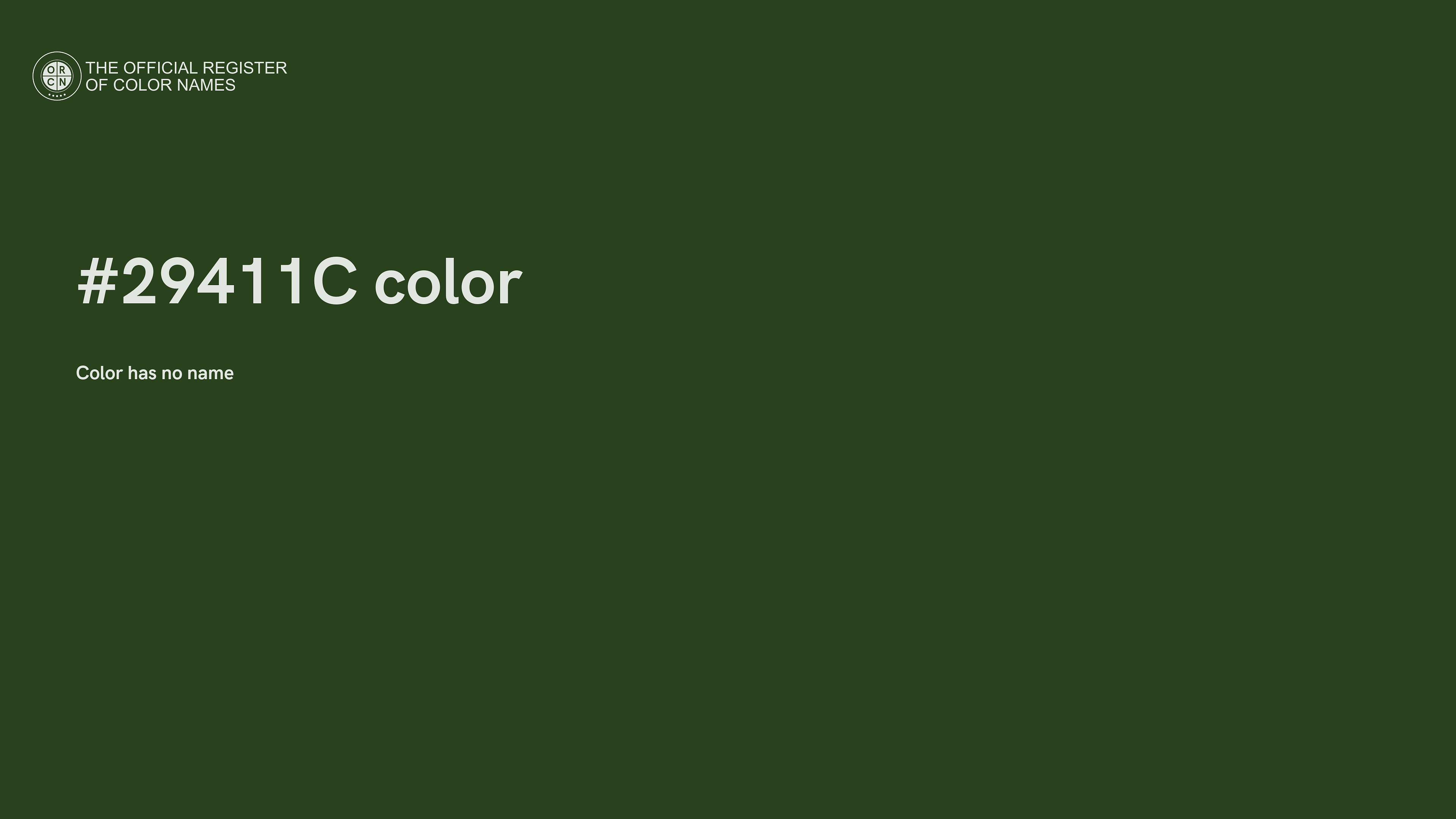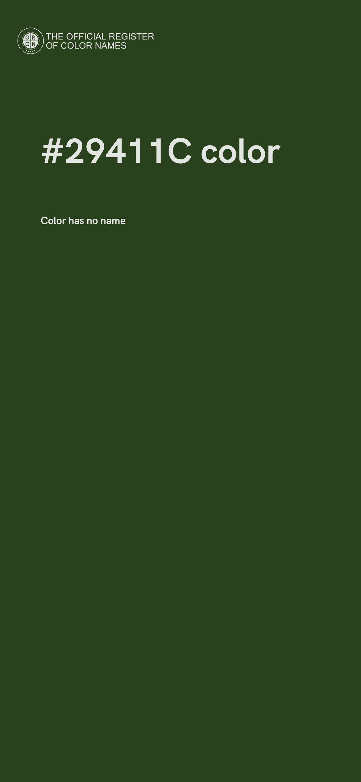 The digital color HEX #29411C belongs to the Chartreuse Color Family featuring Moderate Saturation (Saturation Family) and Dark (Brightness Family).