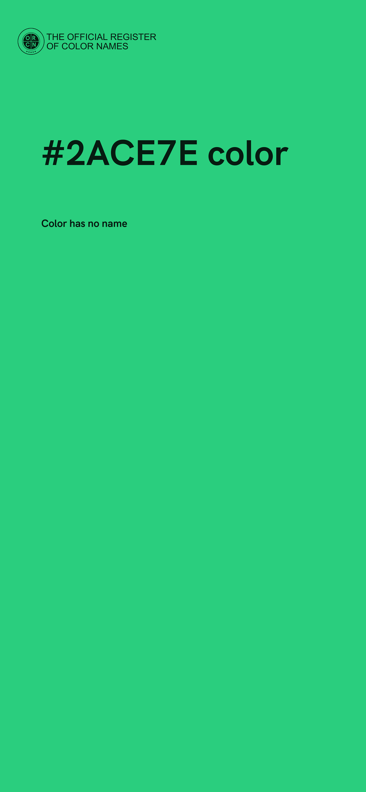 The digital color HEX #2ACE7E belongs to the Spring Green Color Family featuring High Saturation (Saturation Family) and Light (Brightness Family).