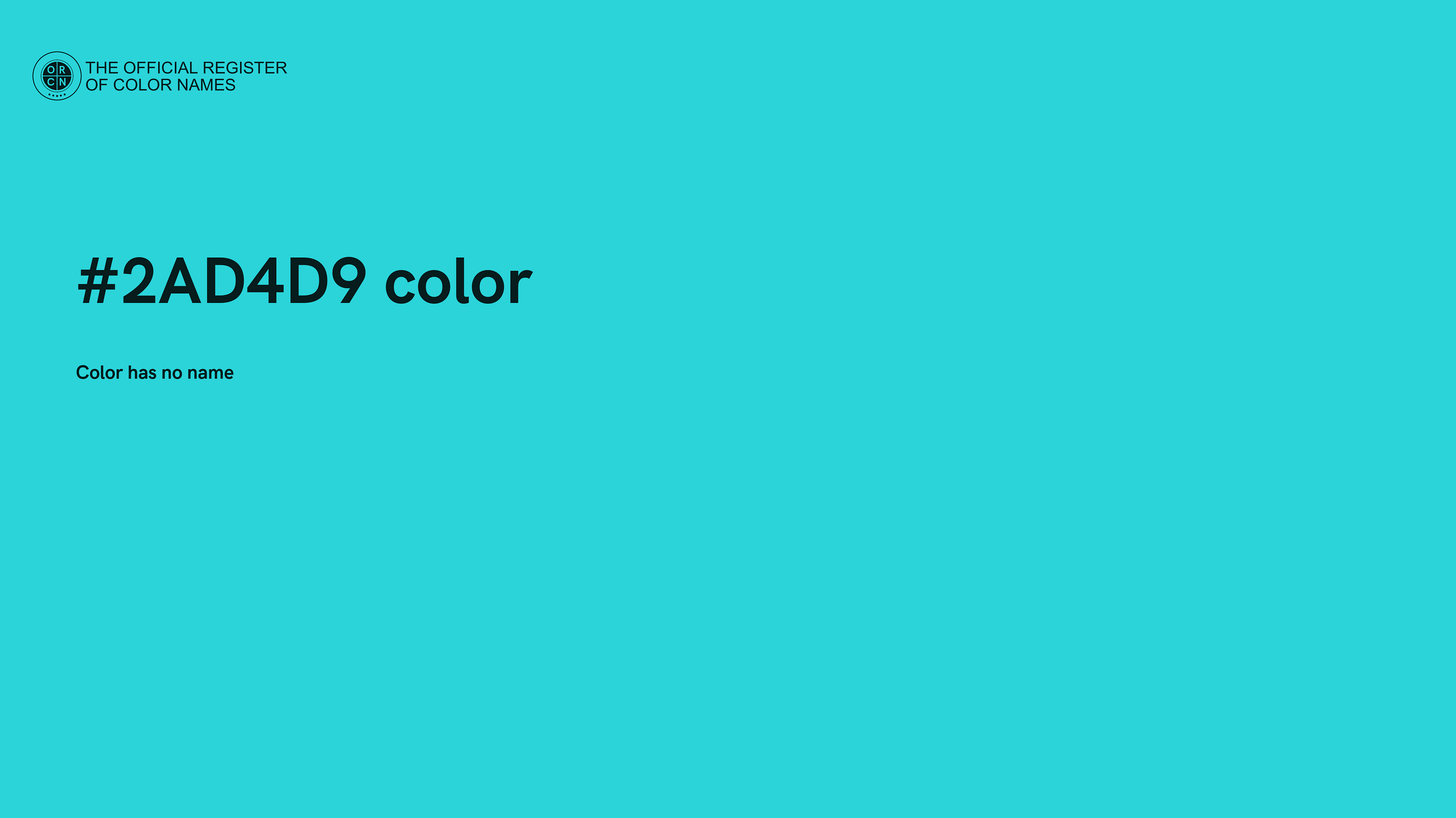 The digital color HEX #2AD4D9 belongs to the Cyan Color Family featuring High Saturation (Saturation Family) and Light (Brightness Family).