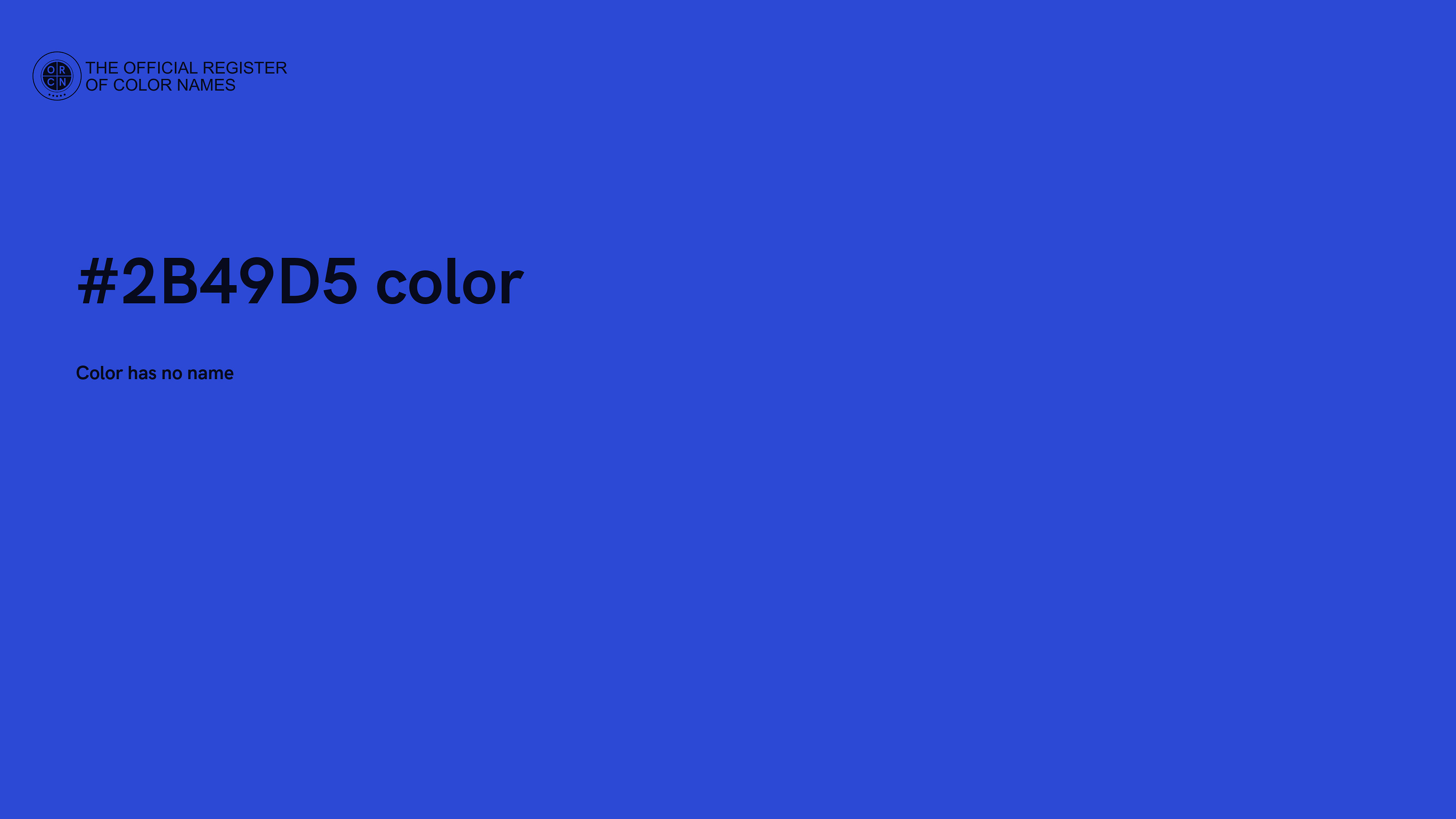 For printing in non digital world, #2B49D5 is represented in CMYK as 67 Cyan, 55 Magenta, 0 Yellow, and 16 Black (Key) (C:67 M:55 Y:0 K:16).
