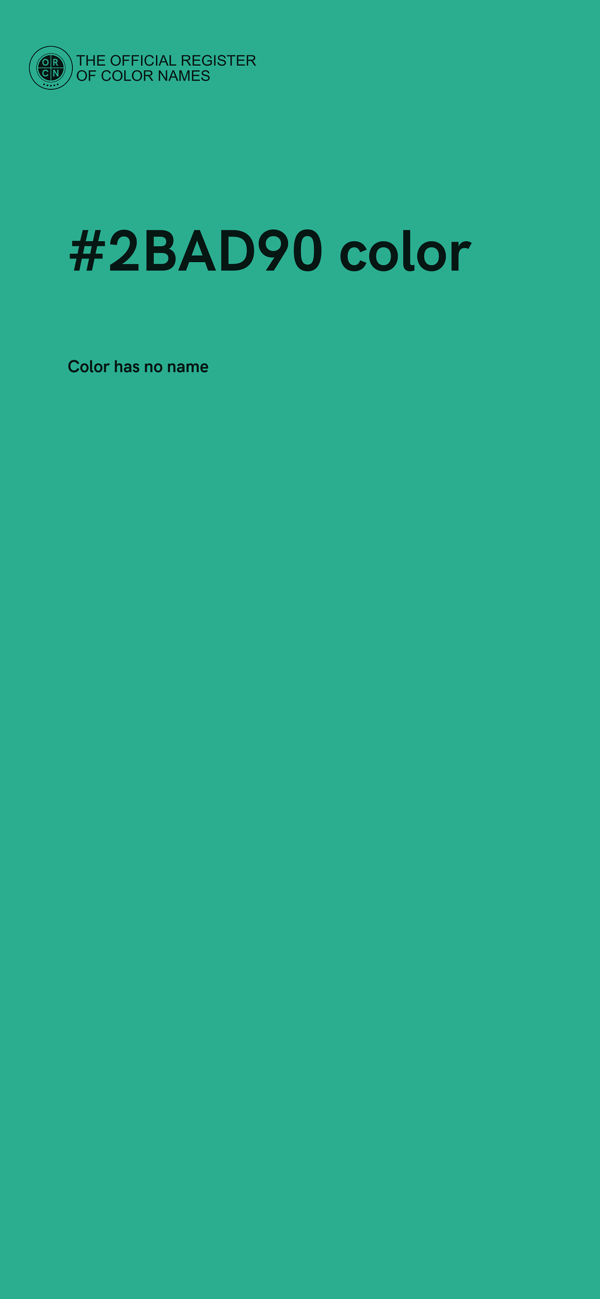 For printing in non digital world, #2BAD90 is represented in CMYK as 51 Cyan, 0 Magenta, 11 Yellow, and 32 Black (Key) (C:51 M:0 Y:11 K:32).