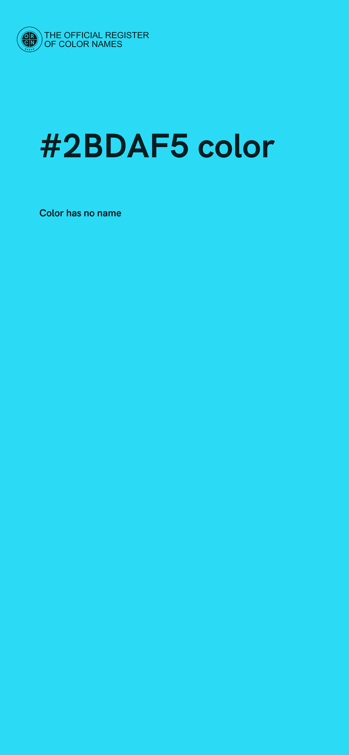 The digital color HEX #2BDAF5 belongs to the Cyan Color Family featuring Full Saturation (Saturation Family) and Light (Brightness Family).