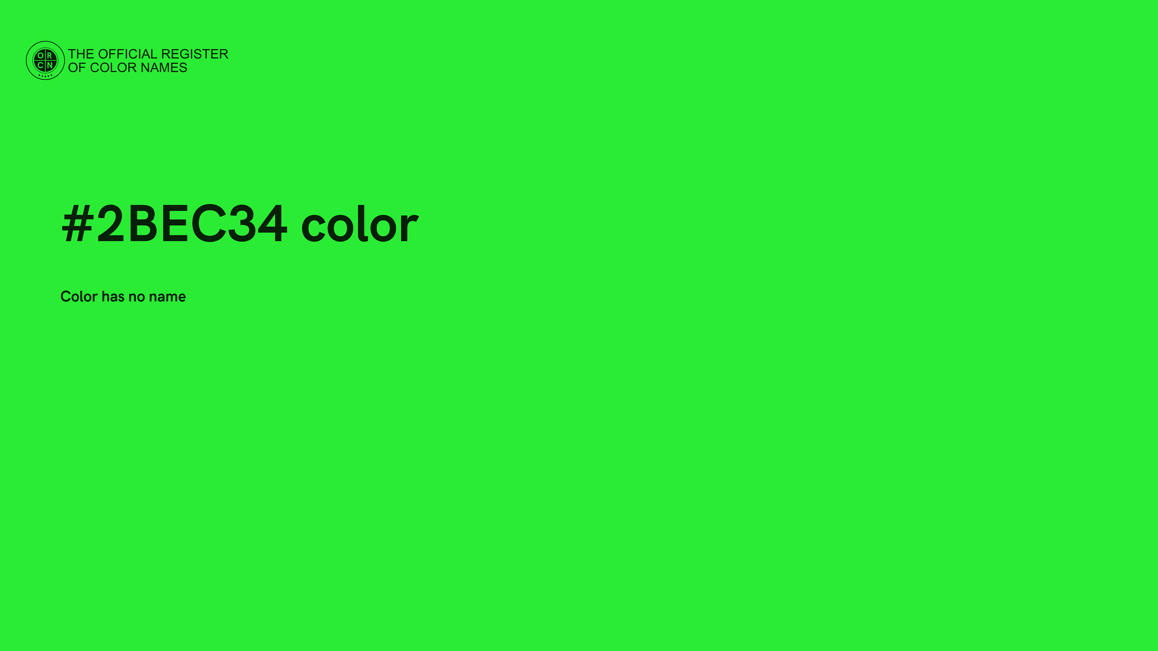 For printing in non digital world, #2BEC34 is represented in CMYK as 76 Cyan, 0 Magenta, 72 Yellow, and 7 Black (Key) (C:76 M:0 Y:72 K:7).