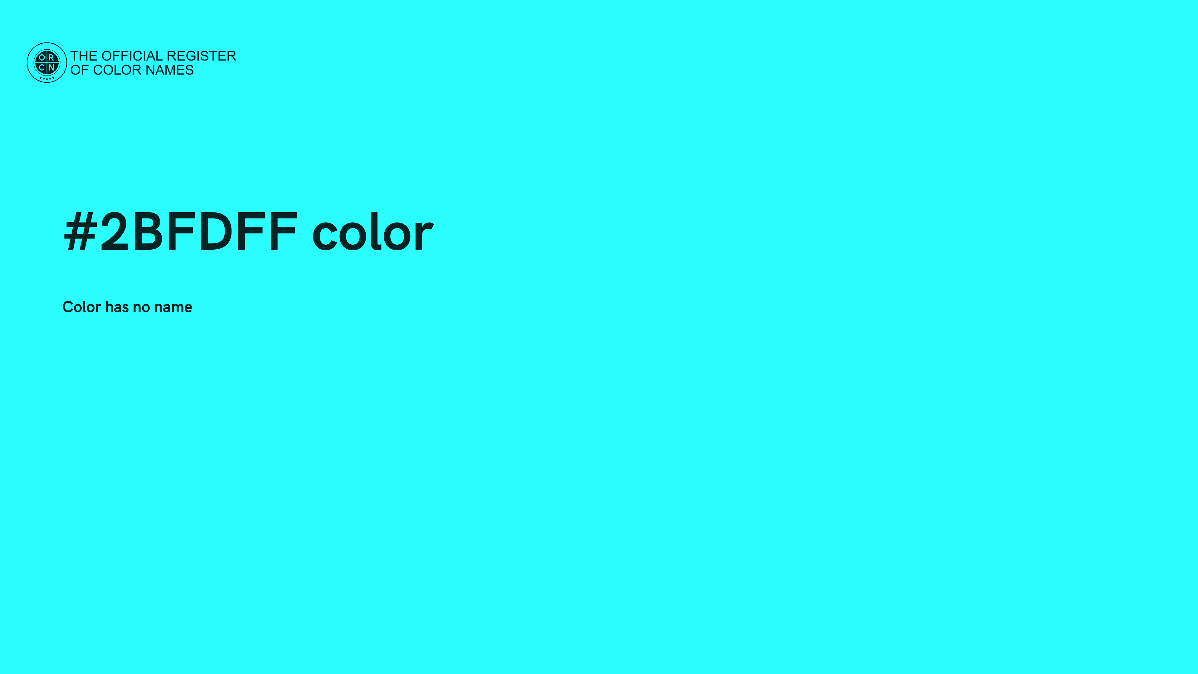 The digital color HEX #2BFDFF belongs to the Cyan Color Family featuring Full Saturation (Saturation Family) and Light (Brightness Family).