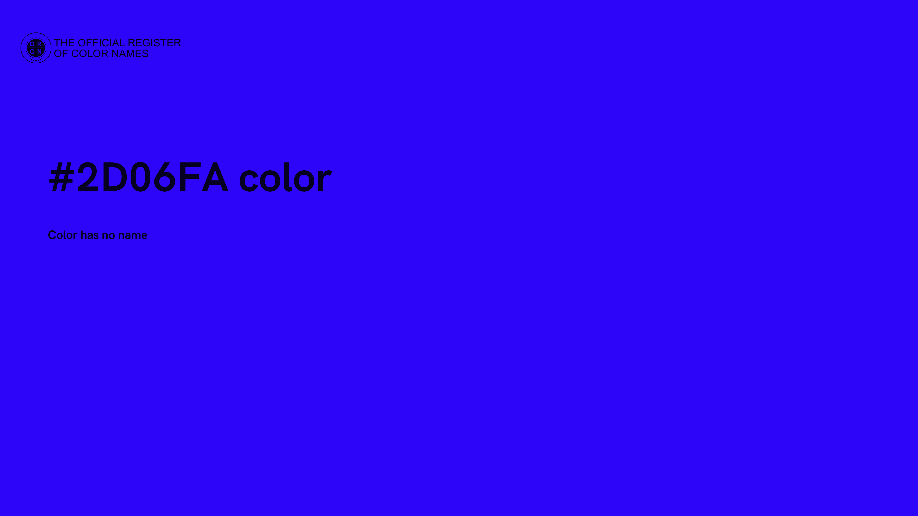 The digital color HEX #2D06FA belongs to the Blue Color Family featuring Full Saturation (Saturation Family) and Light (Brightness Family).