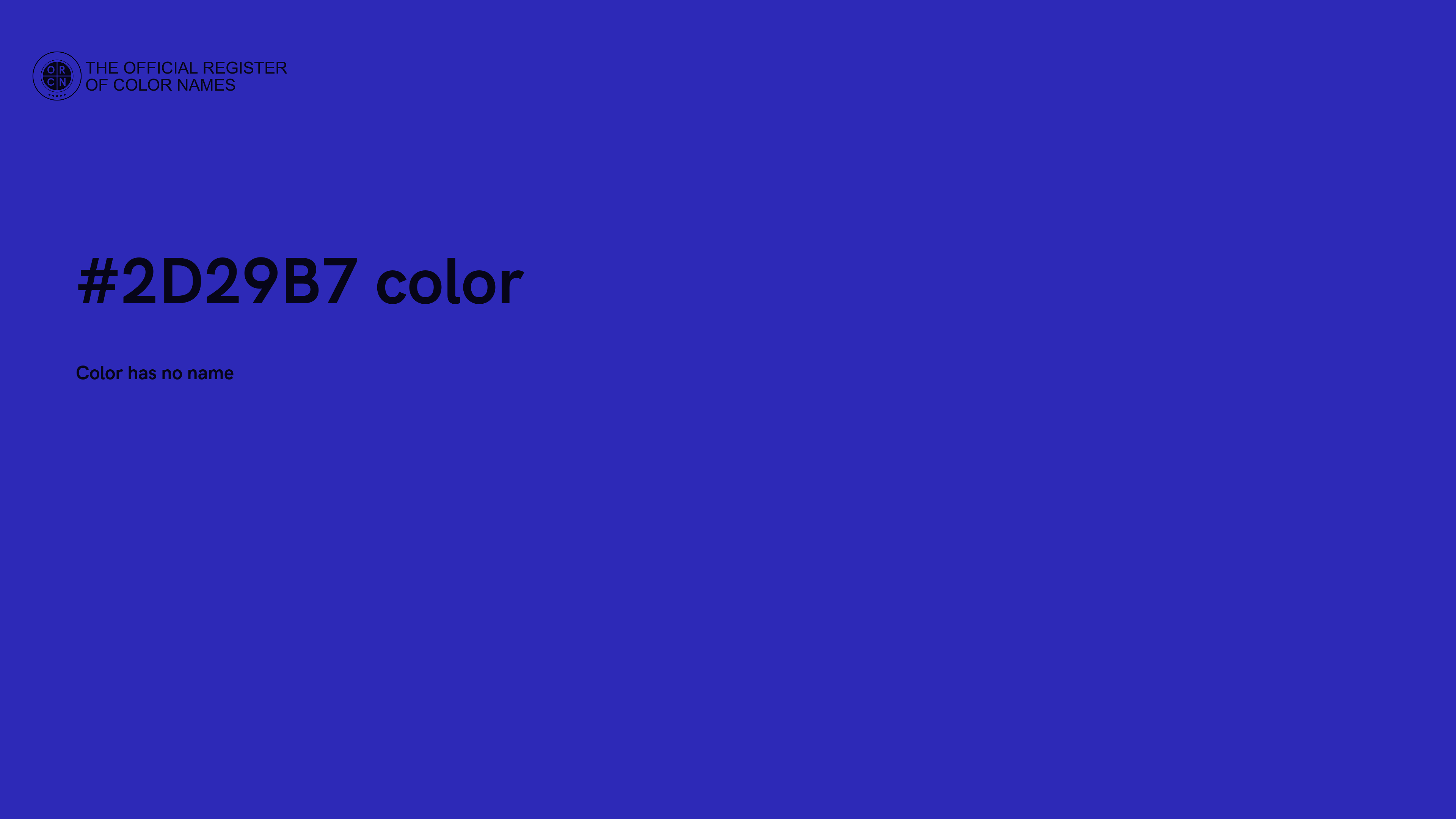The digital color HEX #2D29B7 belongs to the Blue Color Family featuring High Saturation (Saturation Family) and Light (Brightness Family).