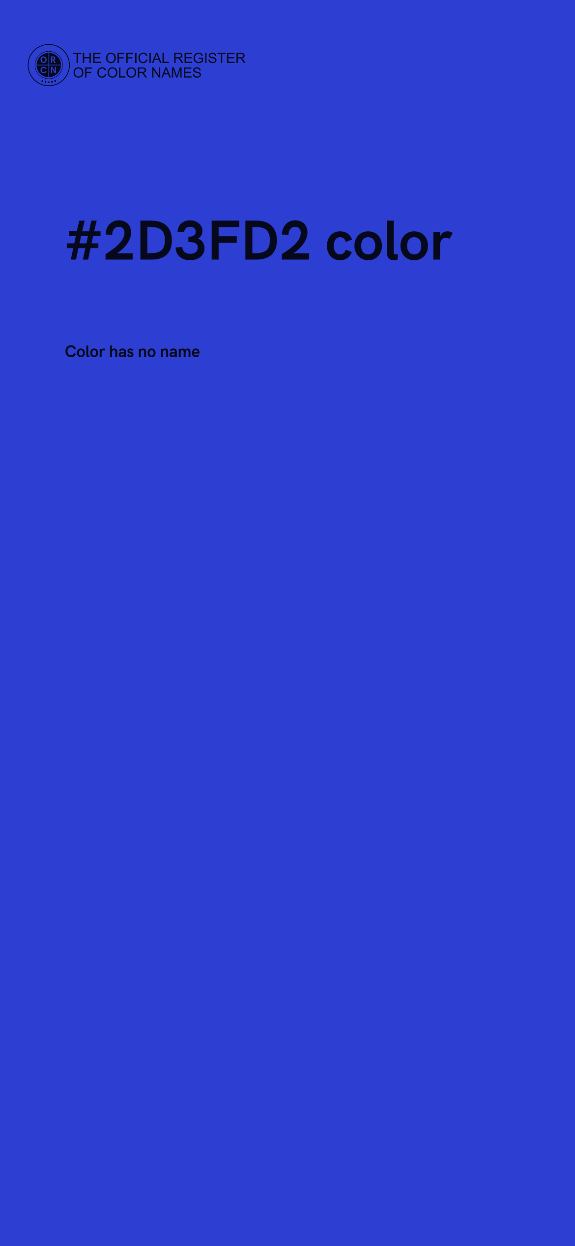 The digital color HEX #2D3FD2 belongs to the Blue Color Family featuring High Saturation (Saturation Family) and Light (Brightness Family).