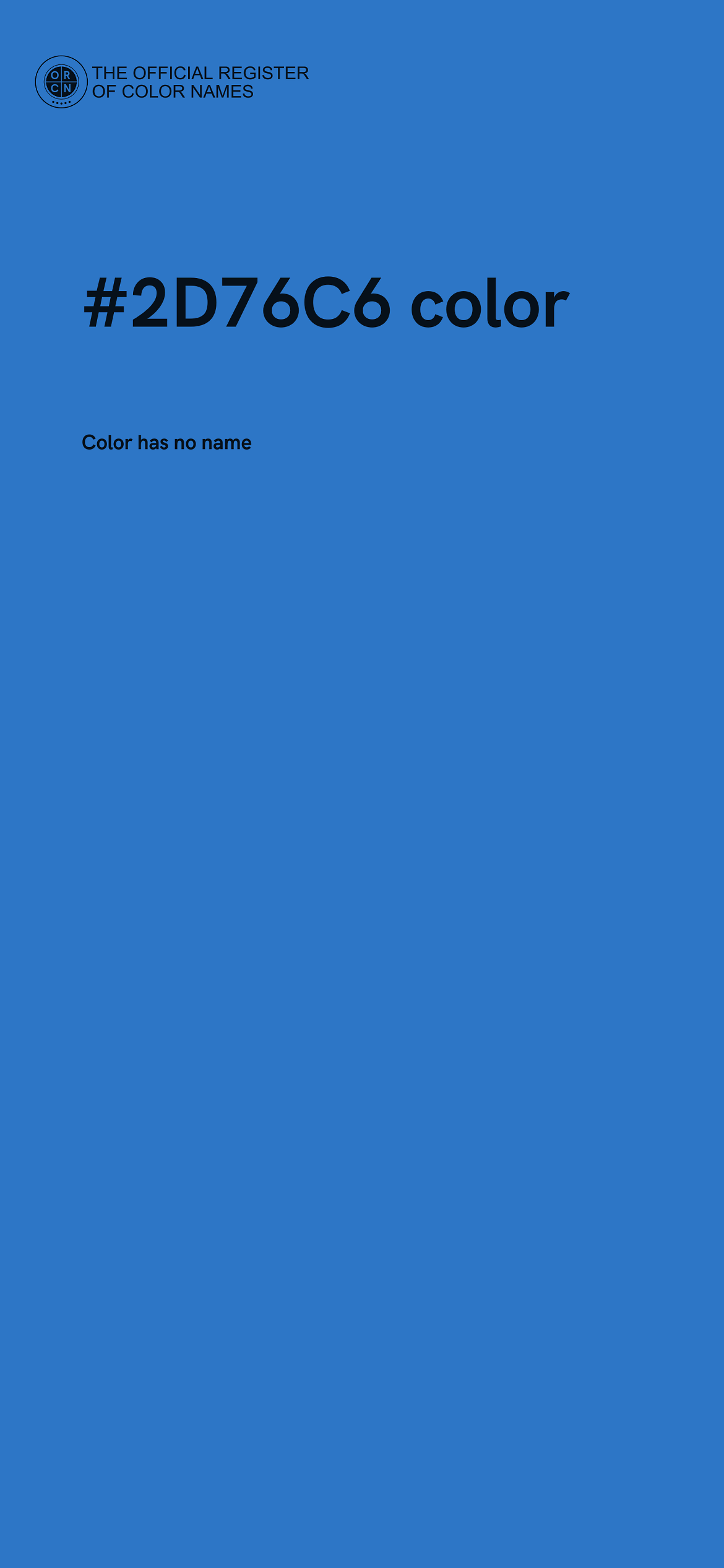 The digital color HEX #2D76C6 belongs to the Azure Color Family featuring High Saturation (Saturation Family) and Light (Brightness Family).