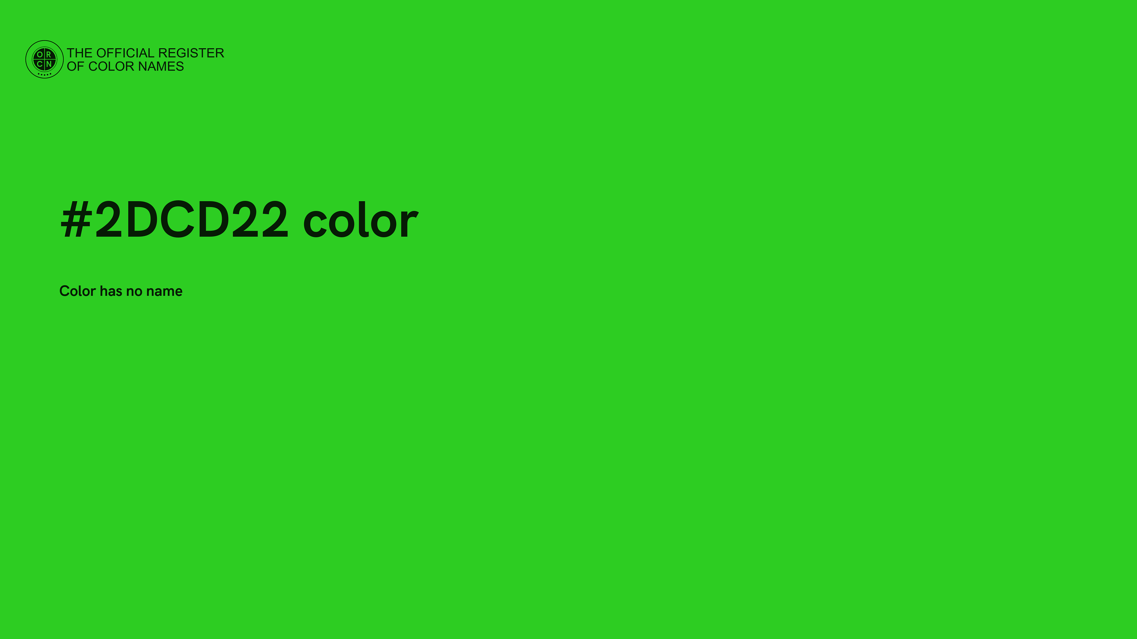 The digital color HEX #2DCD22 belongs to the Green Color Family featuring High Saturation (Saturation Family) and Light (Brightness Family).