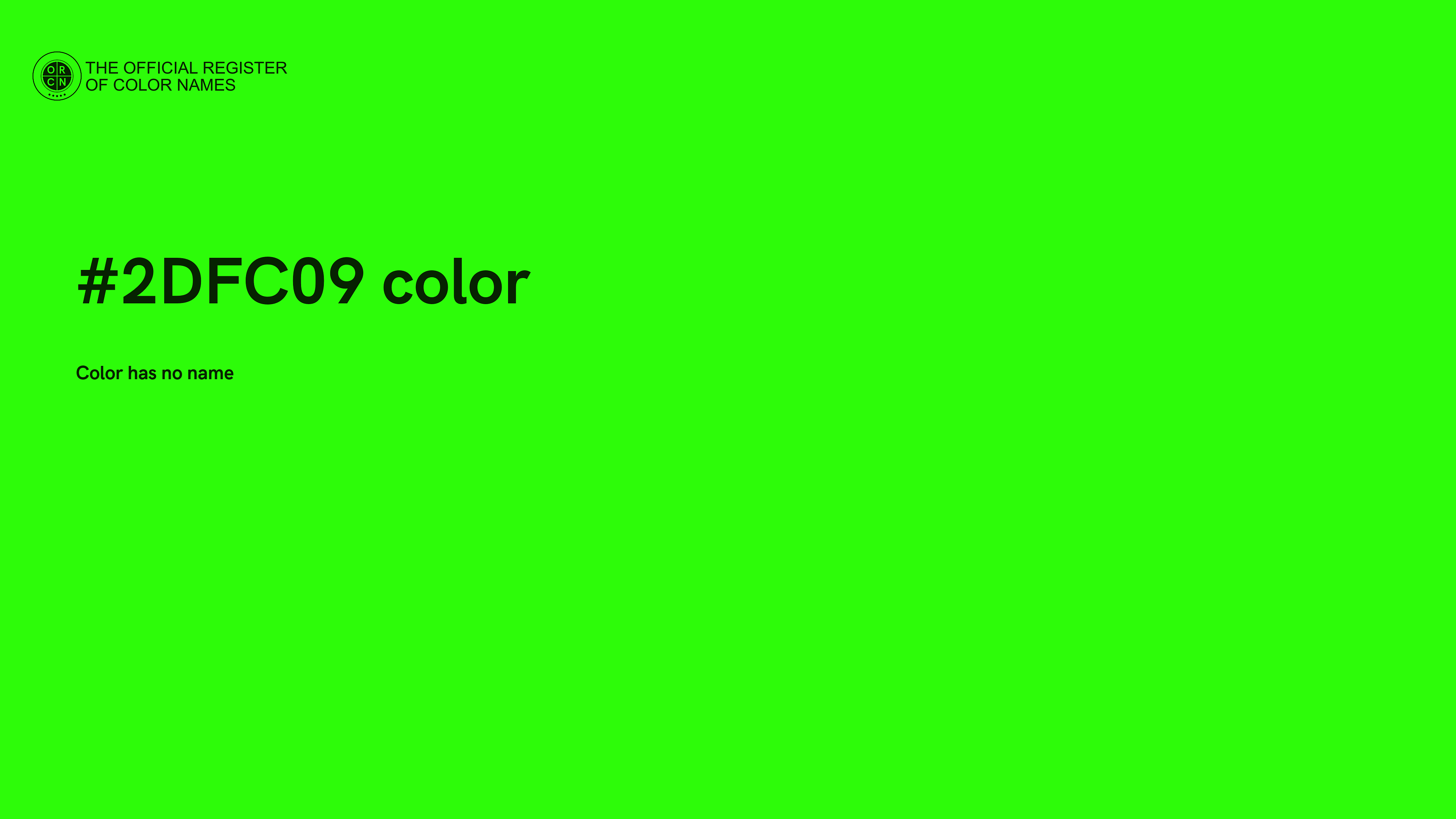 The digital color HEX #2DFC09 belongs to the Green Color Family featuring Full Saturation (Saturation Family) and Light (Brightness Family).
