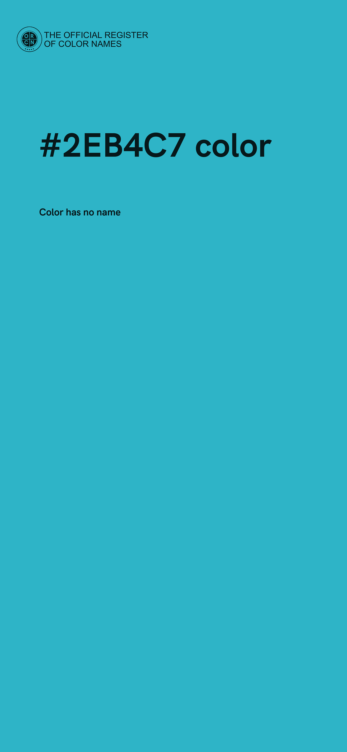 For printing in non digital world, #2EB4C7 is represented in CMYK as 60 Cyan, 7 Magenta, 0 Yellow, and 22 Black (Key) (C:60 M:7 Y:0 K:22).