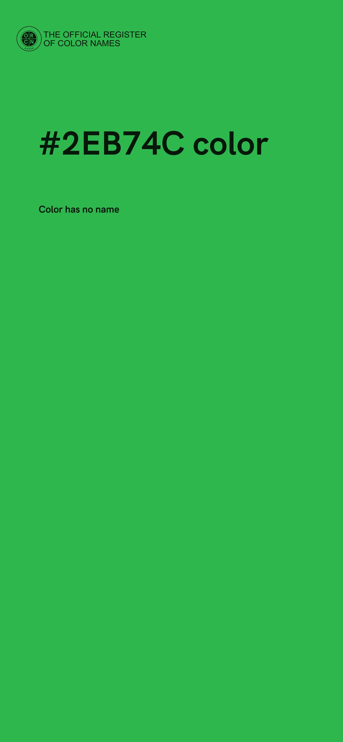 The digital color HEX #2EB74C belongs to the Green Color Family featuring High Saturation (Saturation Family) and Light (Brightness Family).