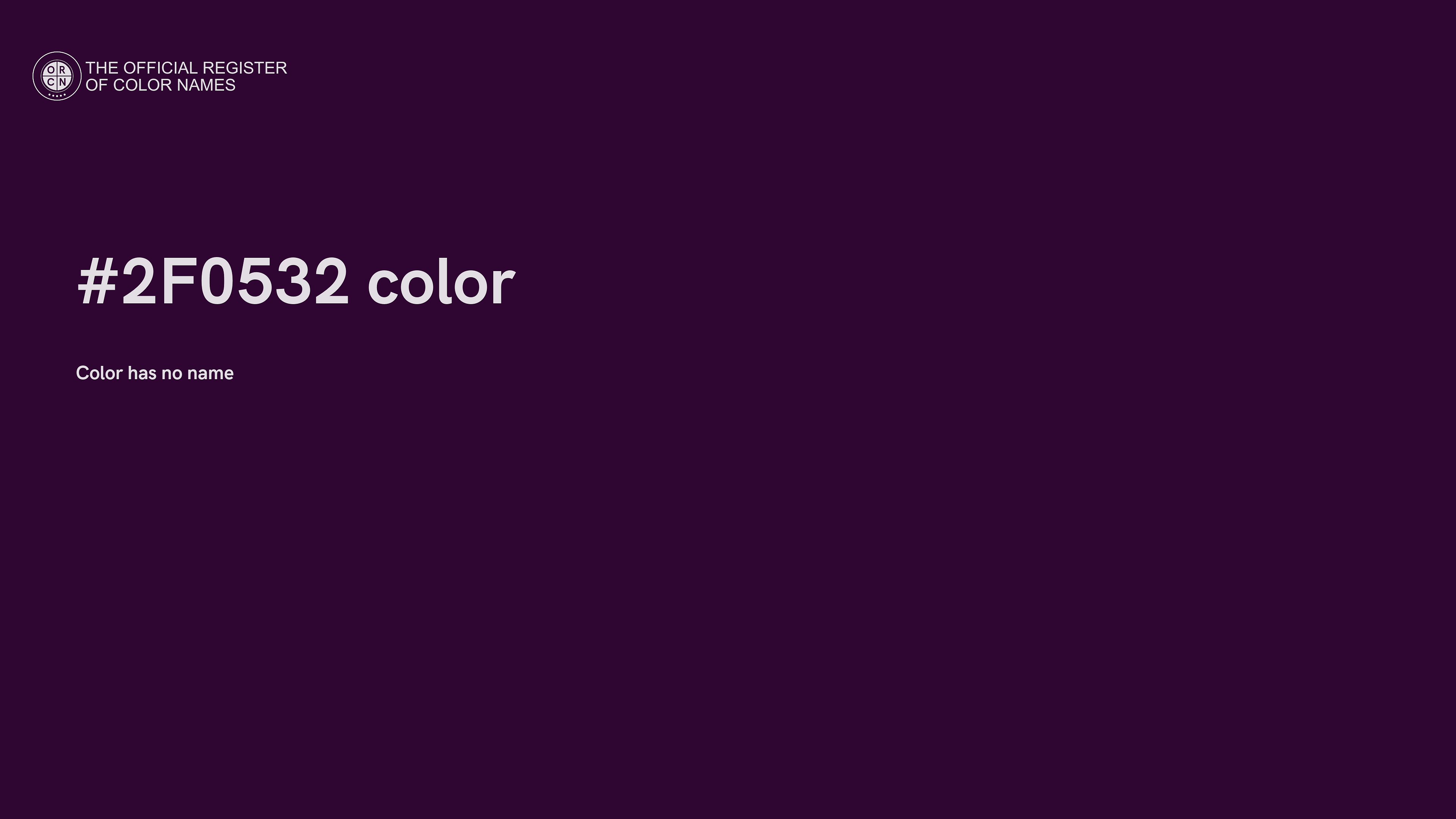 The digital color HEX #2F0532 belongs to the Magenta Color Family featuring High Saturation (Saturation Family) and Dark (Brightness Family).