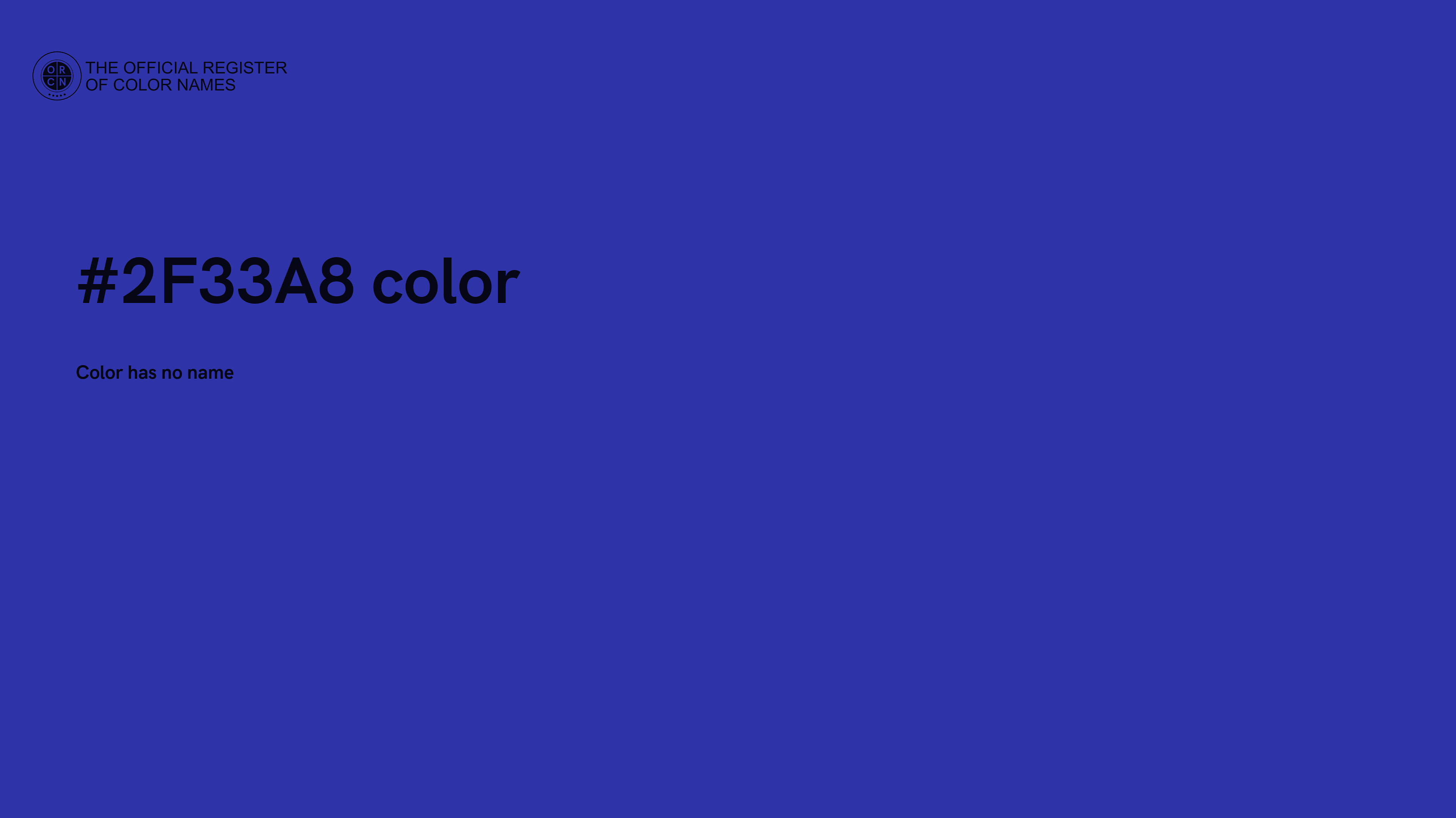 For printing in non digital world, #2F33A8 is represented in CMYK as 47 Cyan, 46 Magenta, 0 Yellow, and 34 Black (Key) (C:47 M:46 Y:0 K:34).