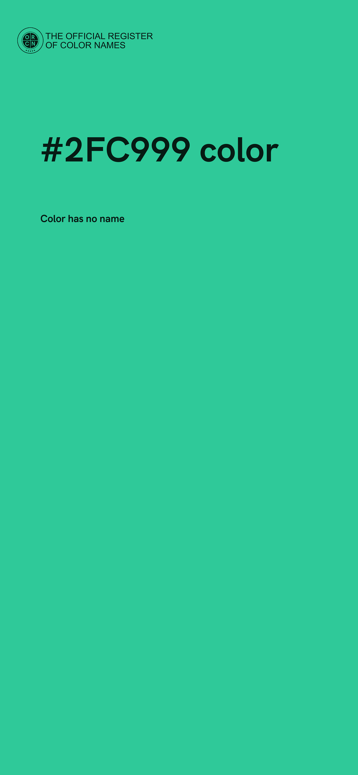 The digital color HEX #2FC999 belongs to the Spring Green Color Family featuring High Saturation (Saturation Family) and Light (Brightness Family).