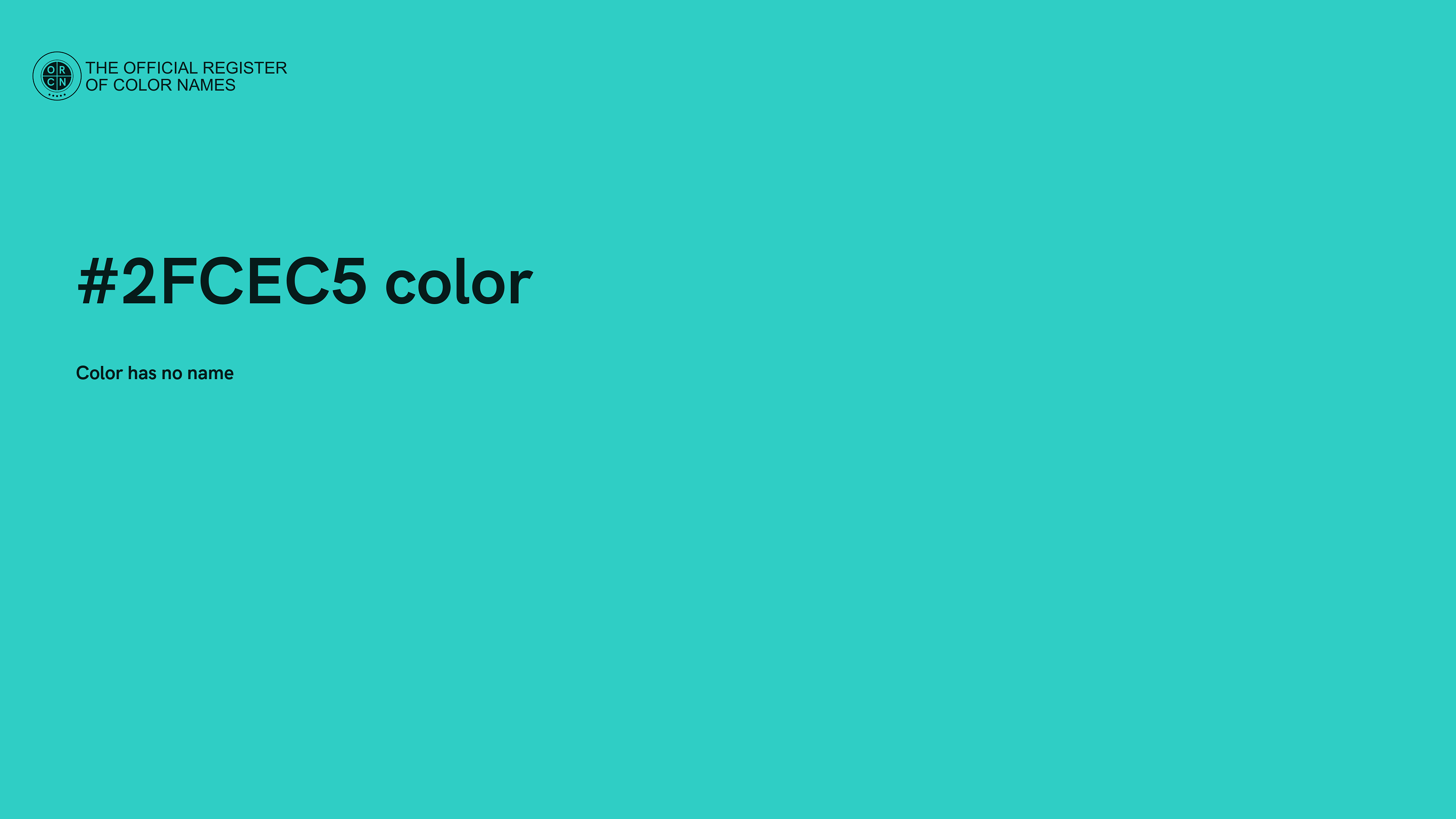 The digital color HEX #2FCEC5 belongs to the Cyan Color Family featuring High Saturation (Saturation Family) and Light (Brightness Family).
