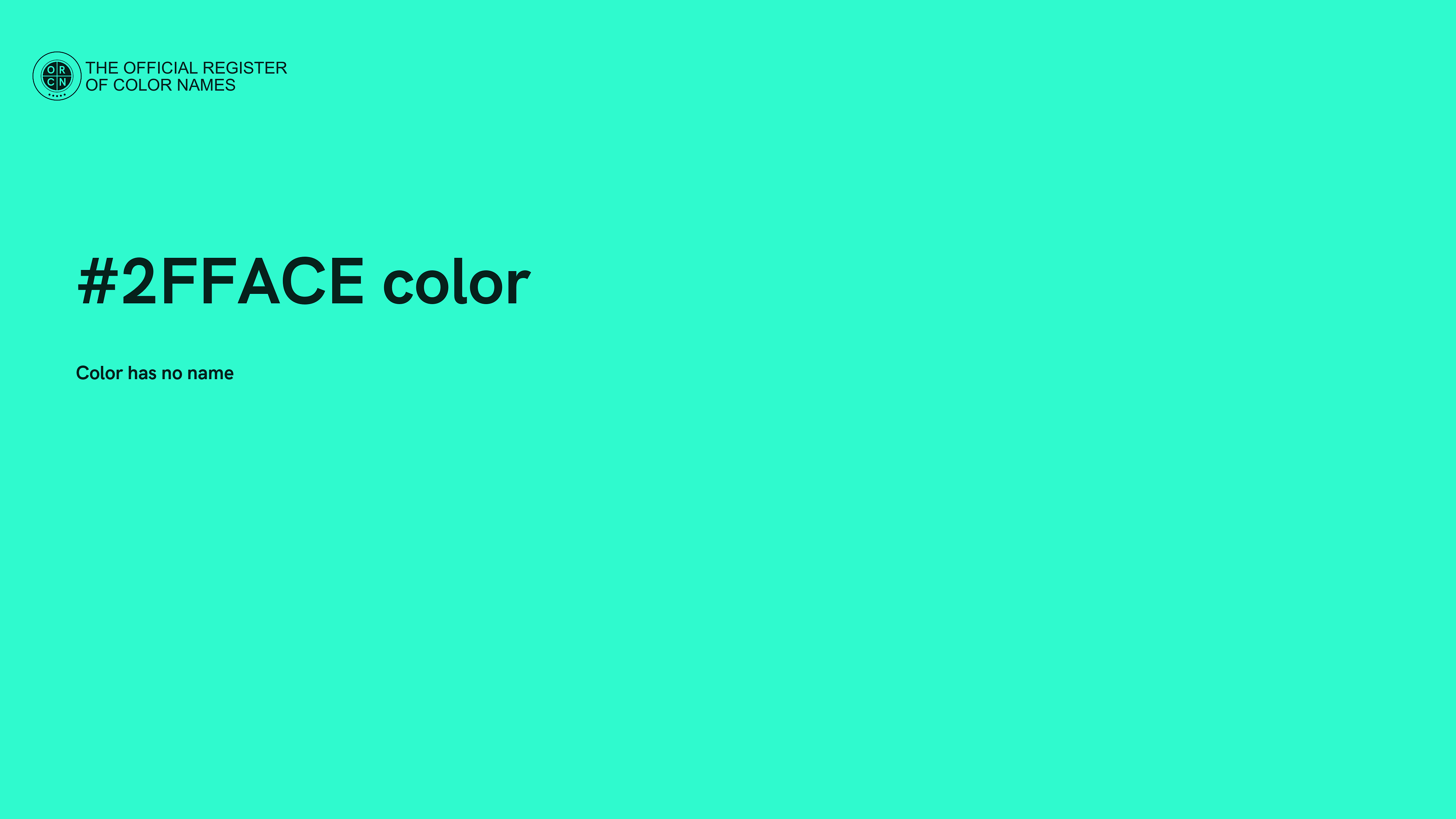 For printing in non digital world, #2FFACE is represented in CMYK as 80 Cyan, 0 Magenta, 17 Yellow, and 2 Black (Key) (C:80 M:0 Y:17 K:2).