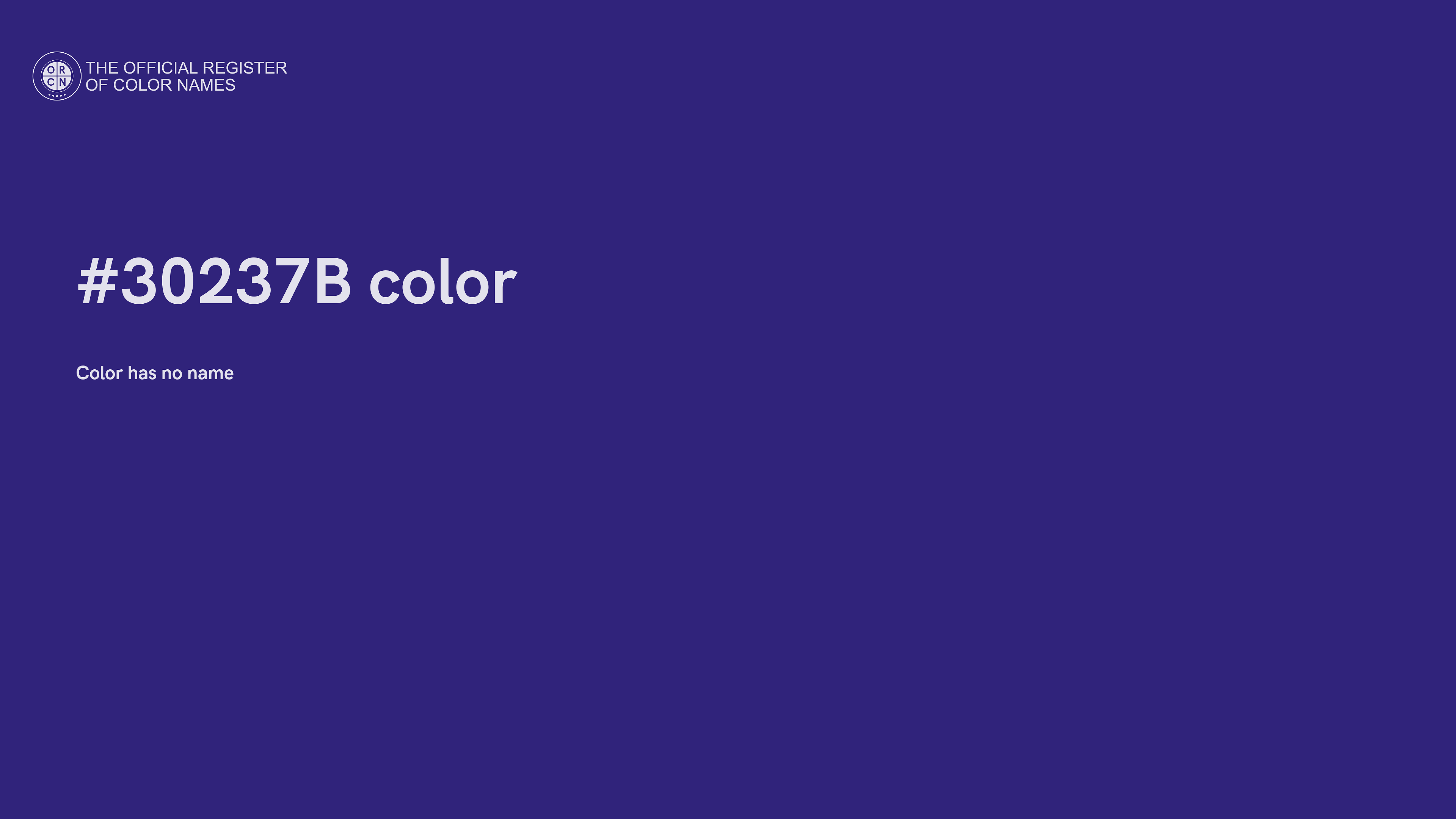 For printing in non digital world, #30237B is represented in CMYK as 29 Cyan, 35 Magenta, 0 Yellow, and 52 Black (Key) (C:29 M:35 Y:0 K:52).