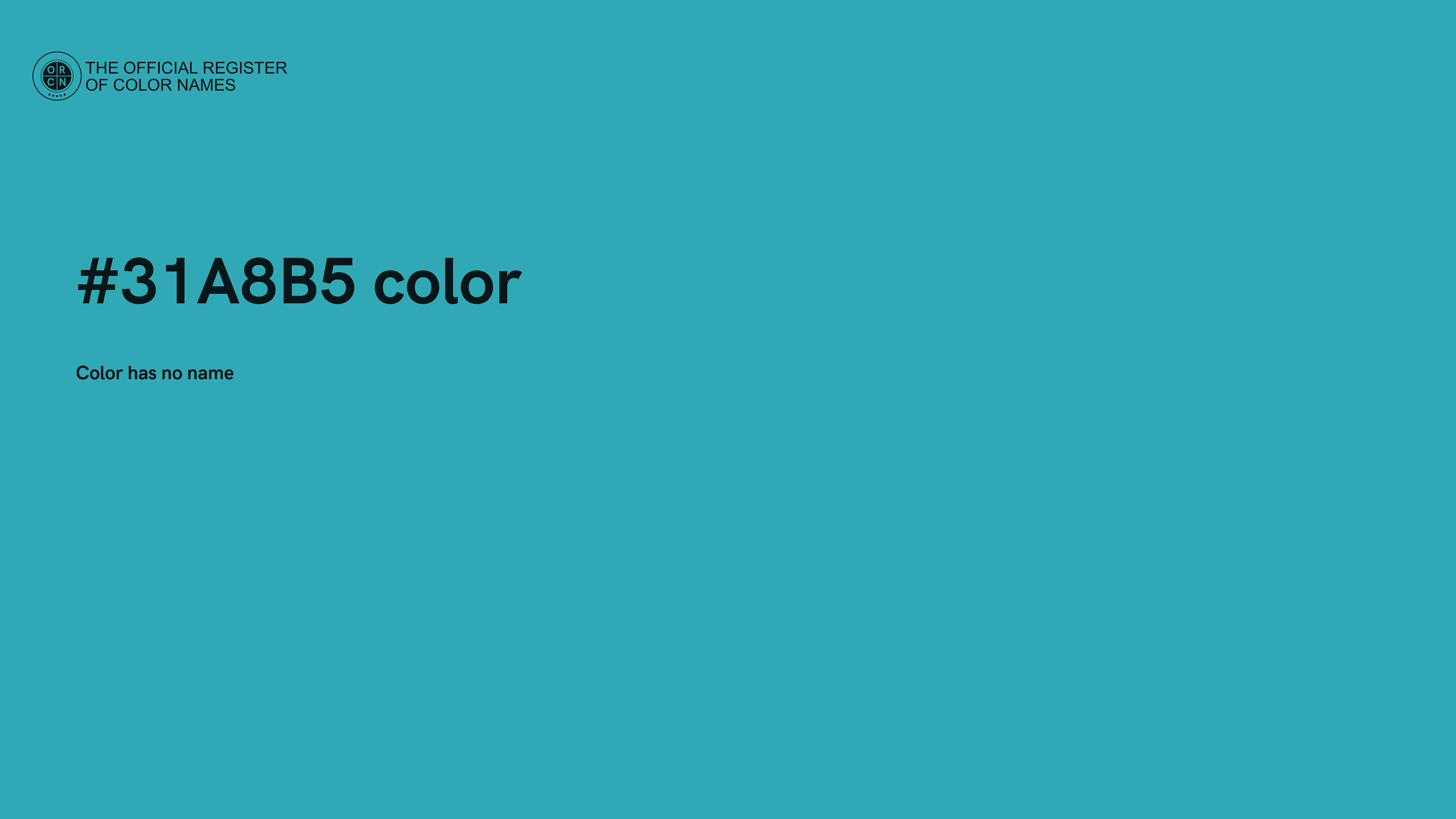 The digital color HEX #31A8B5 belongs to the Cyan Color Family featuring Moderate Saturation (Saturation Family) and Light (Brightness Family).