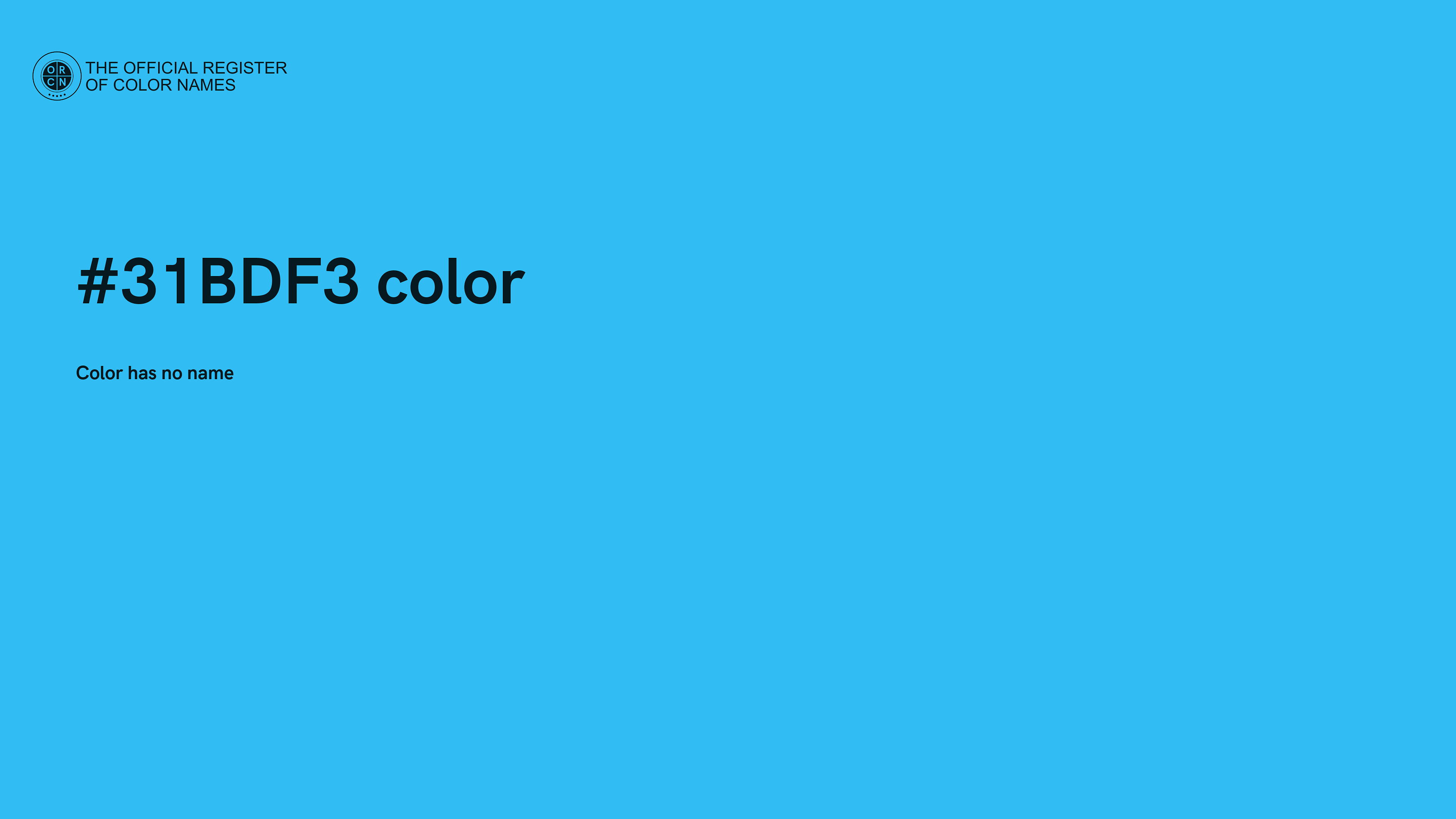 The digital color HEX #31BDF3 belongs to the Azure Color Family featuring Full Saturation (Saturation Family) and Light (Brightness Family).