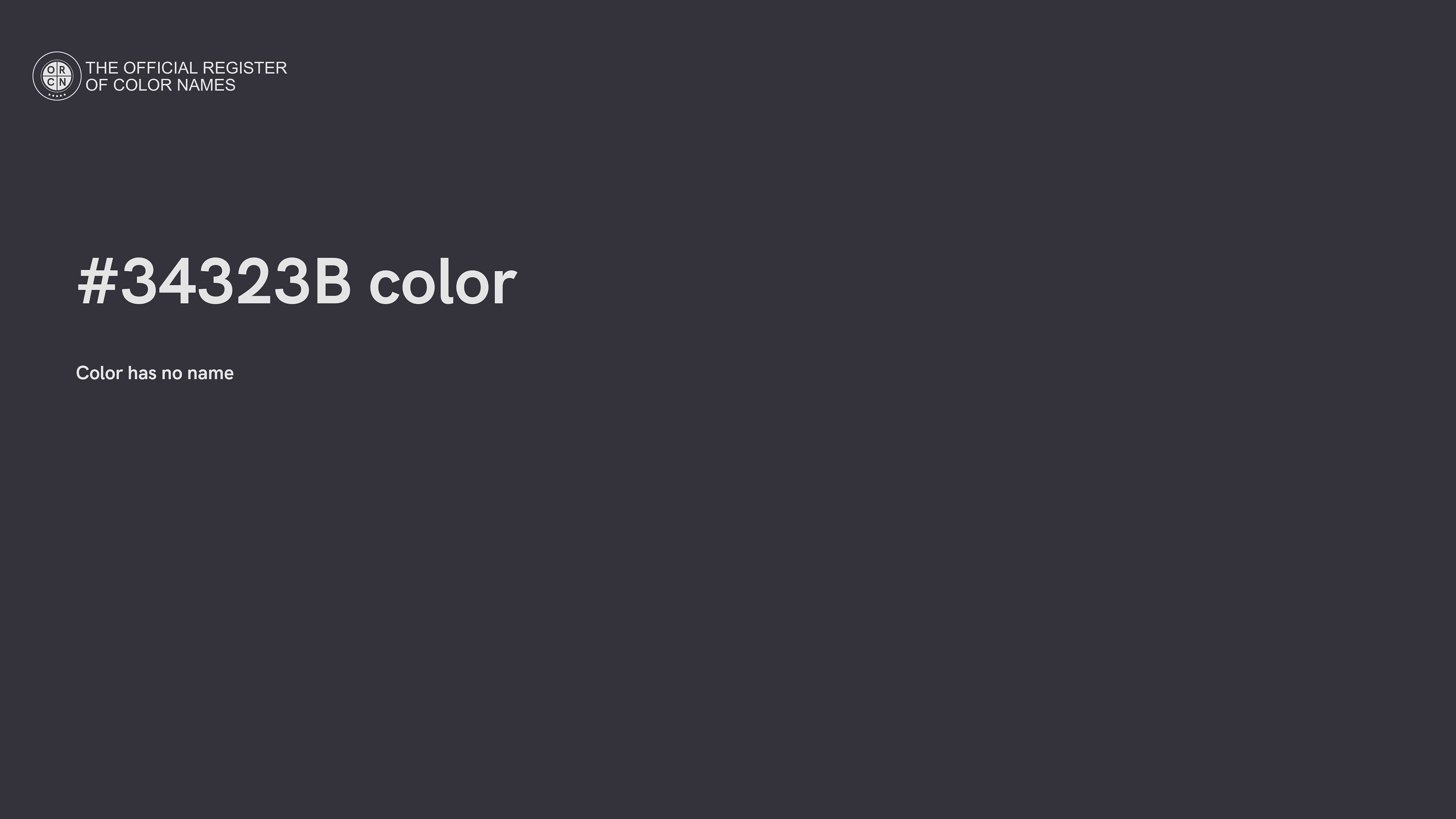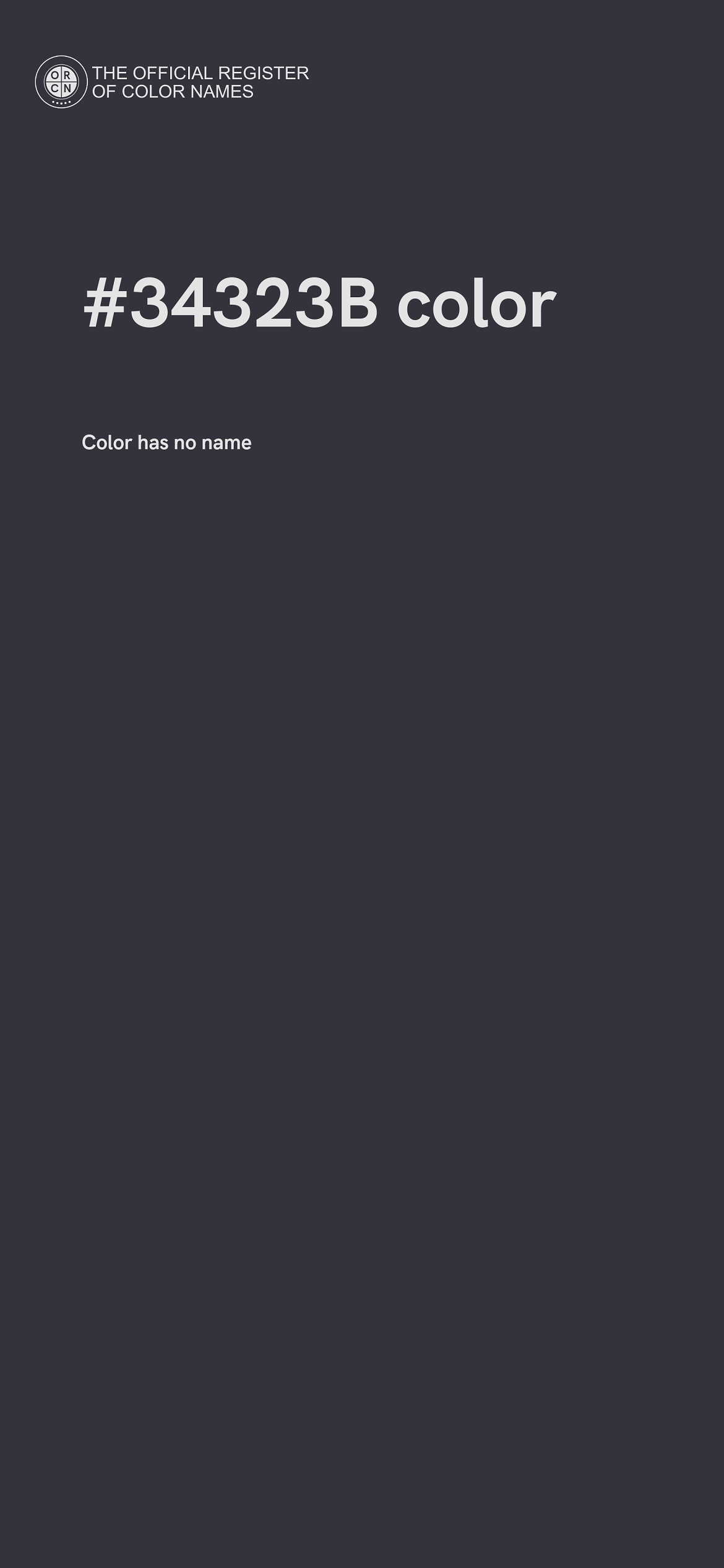 The digital color HEX #34323B belongs to the Blue Color Family featuring Desaturated (Saturation Family) and Dark (Brightness Family).