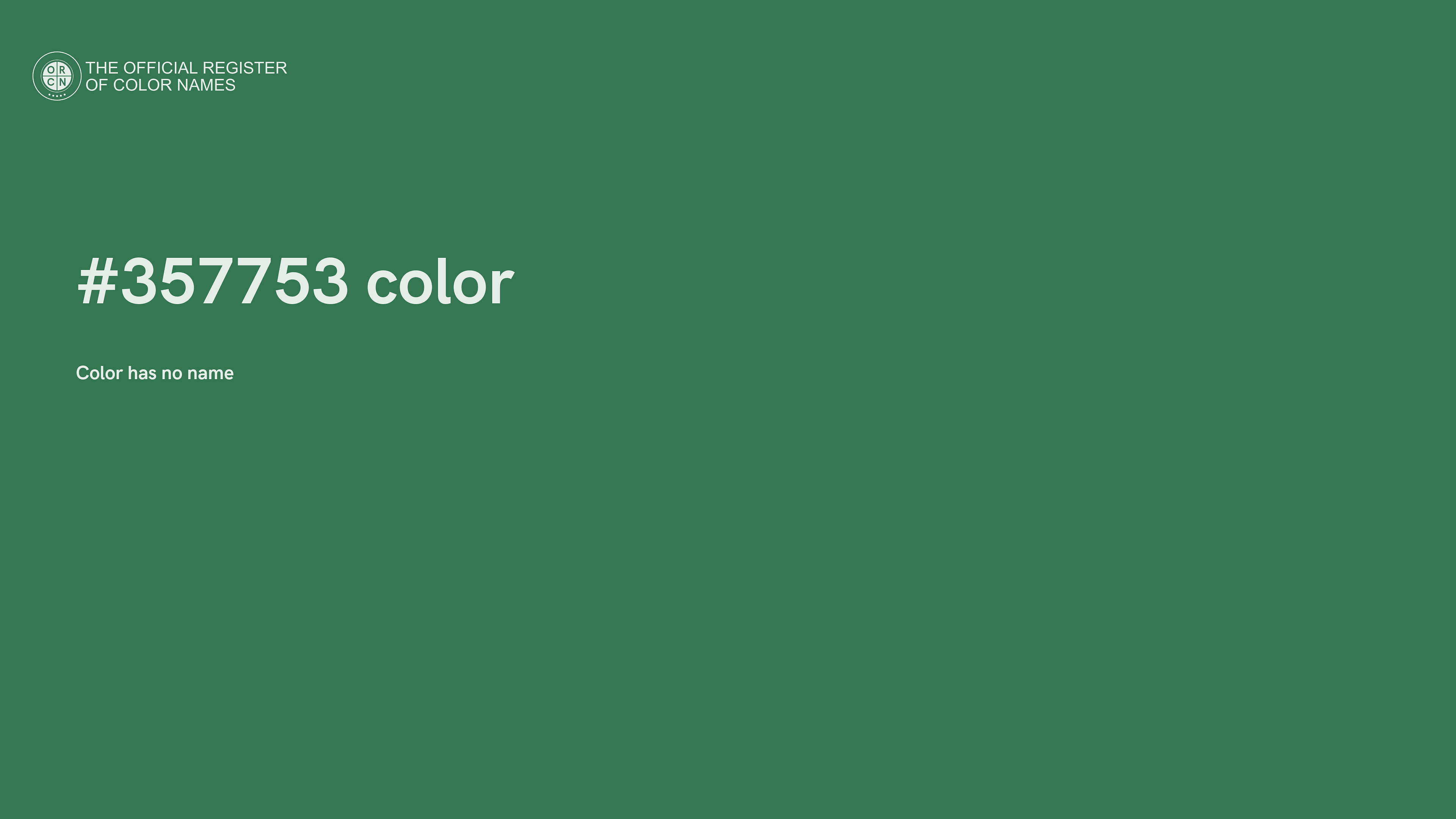 The digital color HEX #357753 belongs to the Spring Green Color Family featuring Mild Saturation (Saturation Family) and Neutral (Brightness Family).