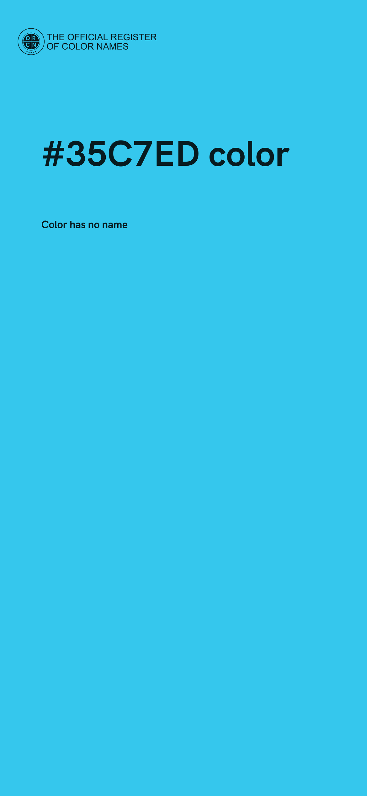 The digital color HEX #35C7ED belongs to the Cyan Color Family featuring High Saturation (Saturation Family) and Light (Brightness Family).