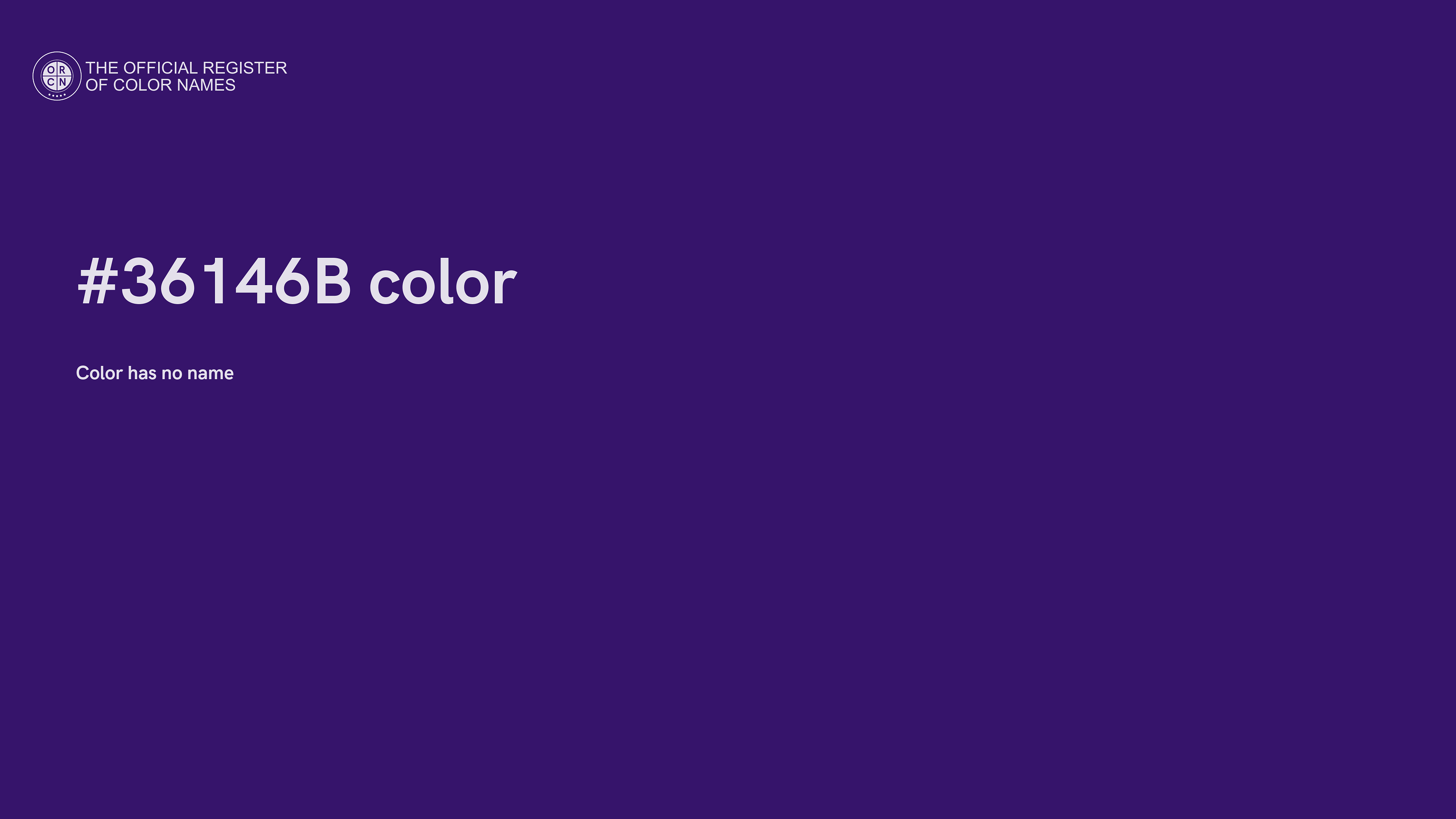 The digital color HEX #36146B belongs to the Violet Color Family featuring High Saturation (Saturation Family) and Neutral (Brightness Family).