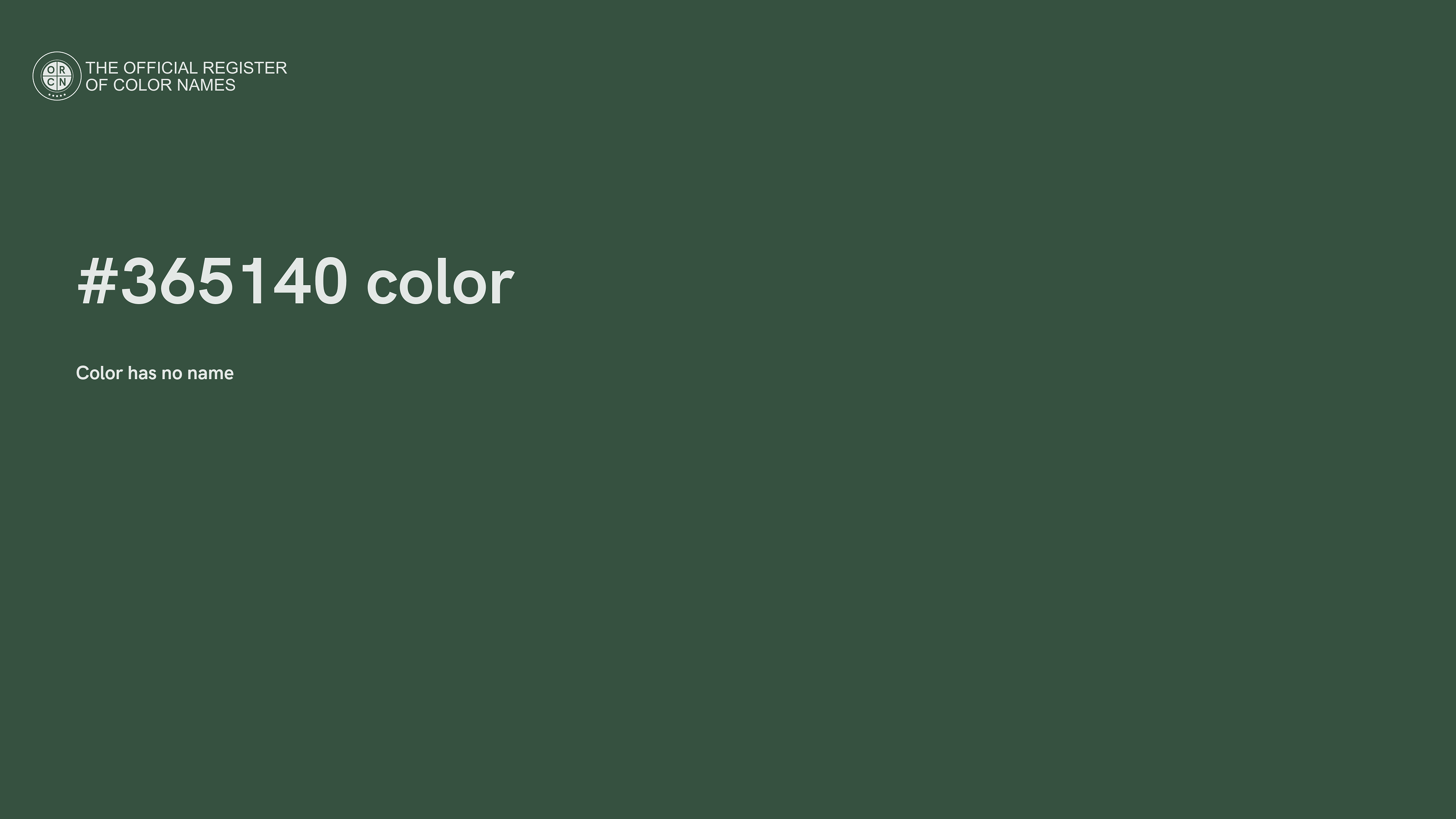 The digital color HEX #365140 belongs to the Spring Green Color Family featuring Low Saturation (Saturation Family) and Neutral (Brightness Family).