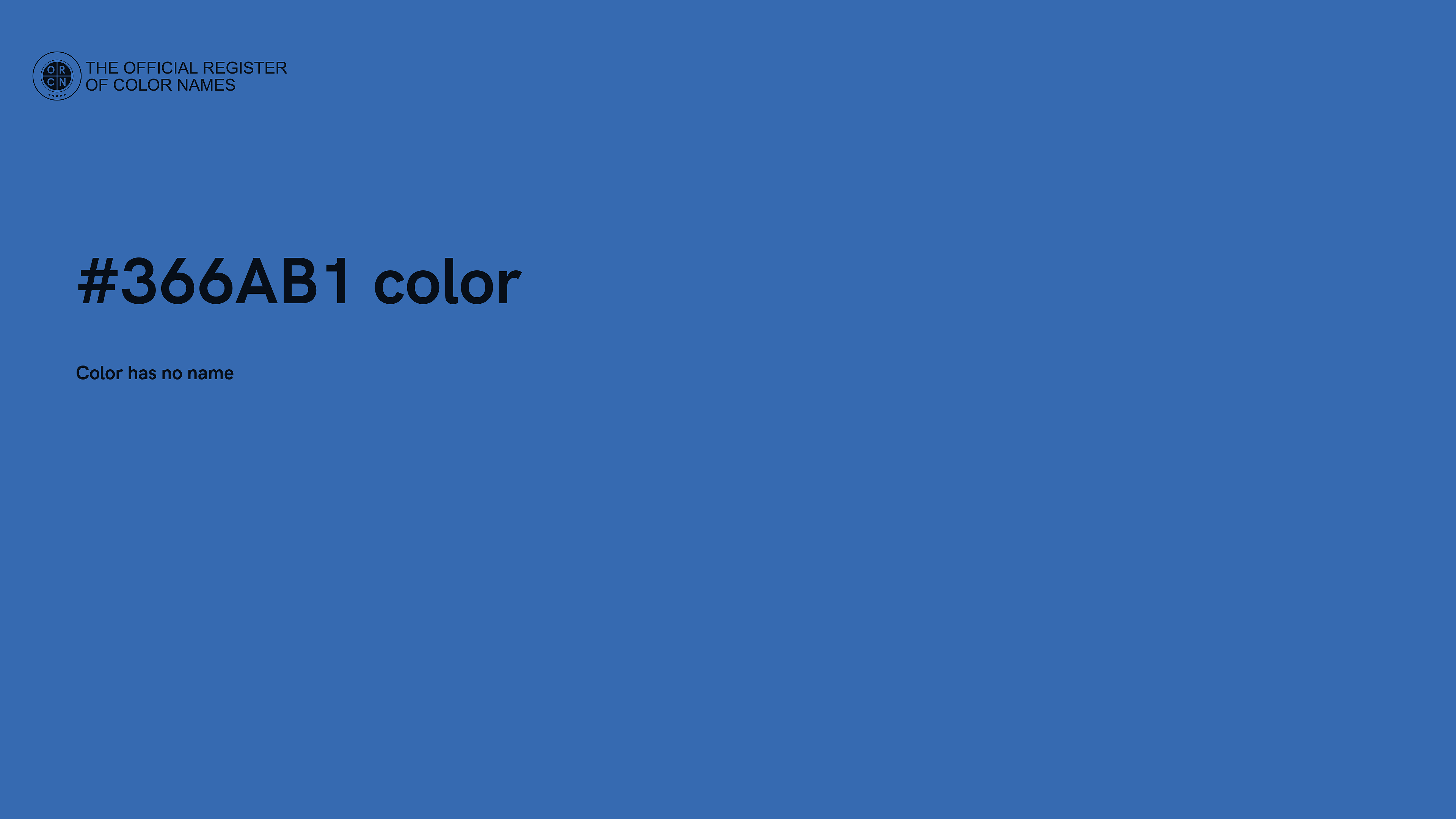 The digital color HEX #366AB1 belongs to the Azure Color Family featuring Moderate Saturation (Saturation Family) and Light (Brightness Family).