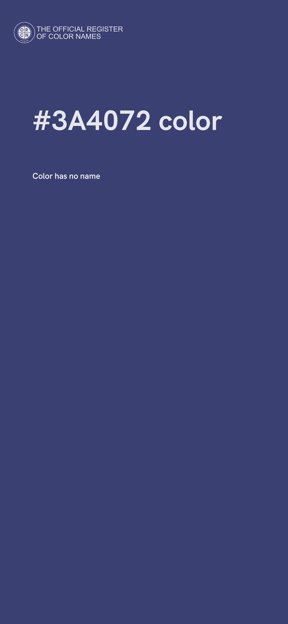 The digital color HEX #3A4072 belongs to the Blue Color Family featuring Mild Saturation (Saturation Family) and Neutral (Brightness Family).