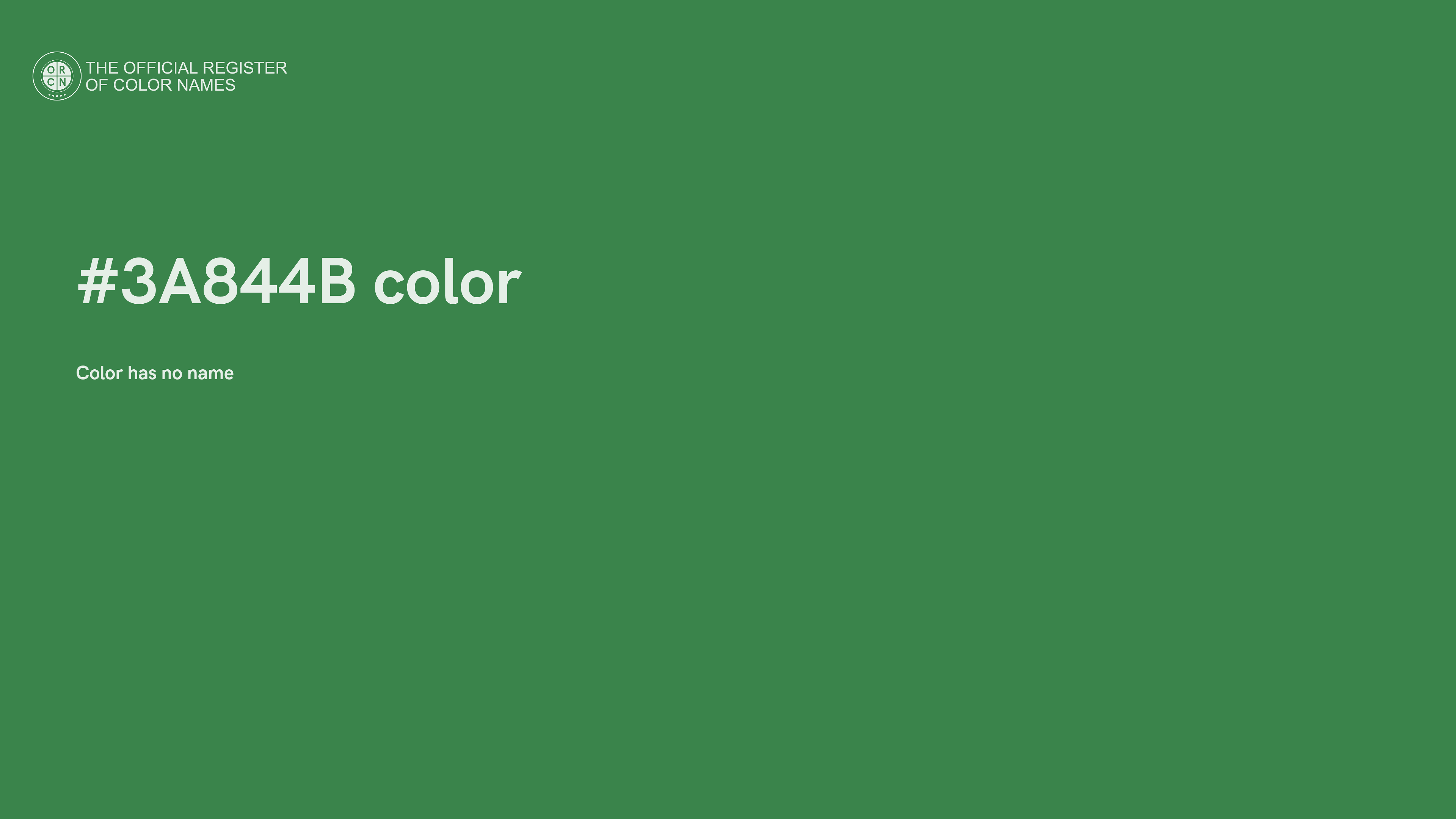 The digital color HEX #3A844B belongs to the Green Color Family featuring Mild Saturation (Saturation Family) and Neutral (Brightness Family).