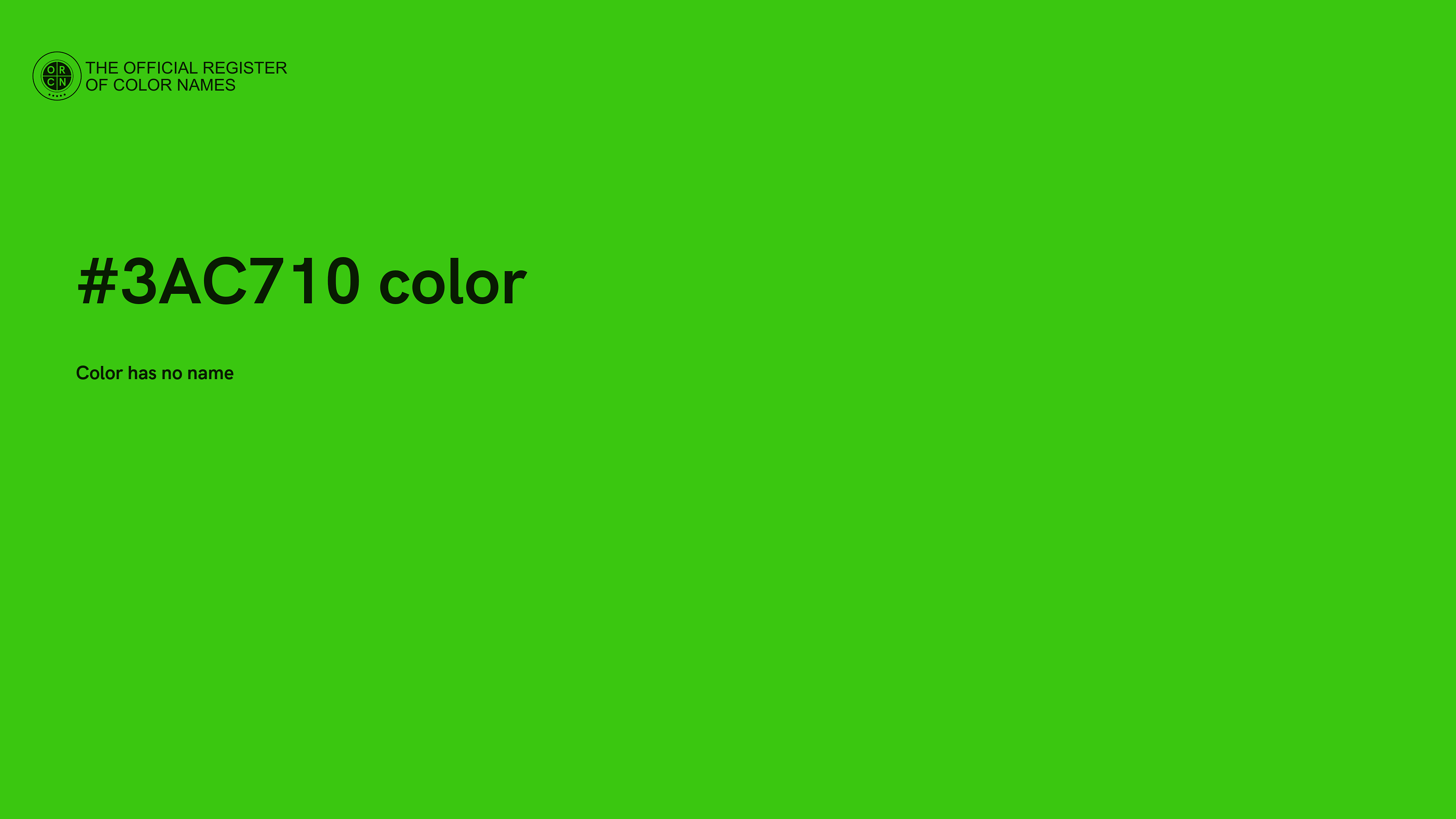 The digital color HEX #3AC710 belongs to the Green Color Family featuring Full Saturation (Saturation Family) and Light (Brightness Family).