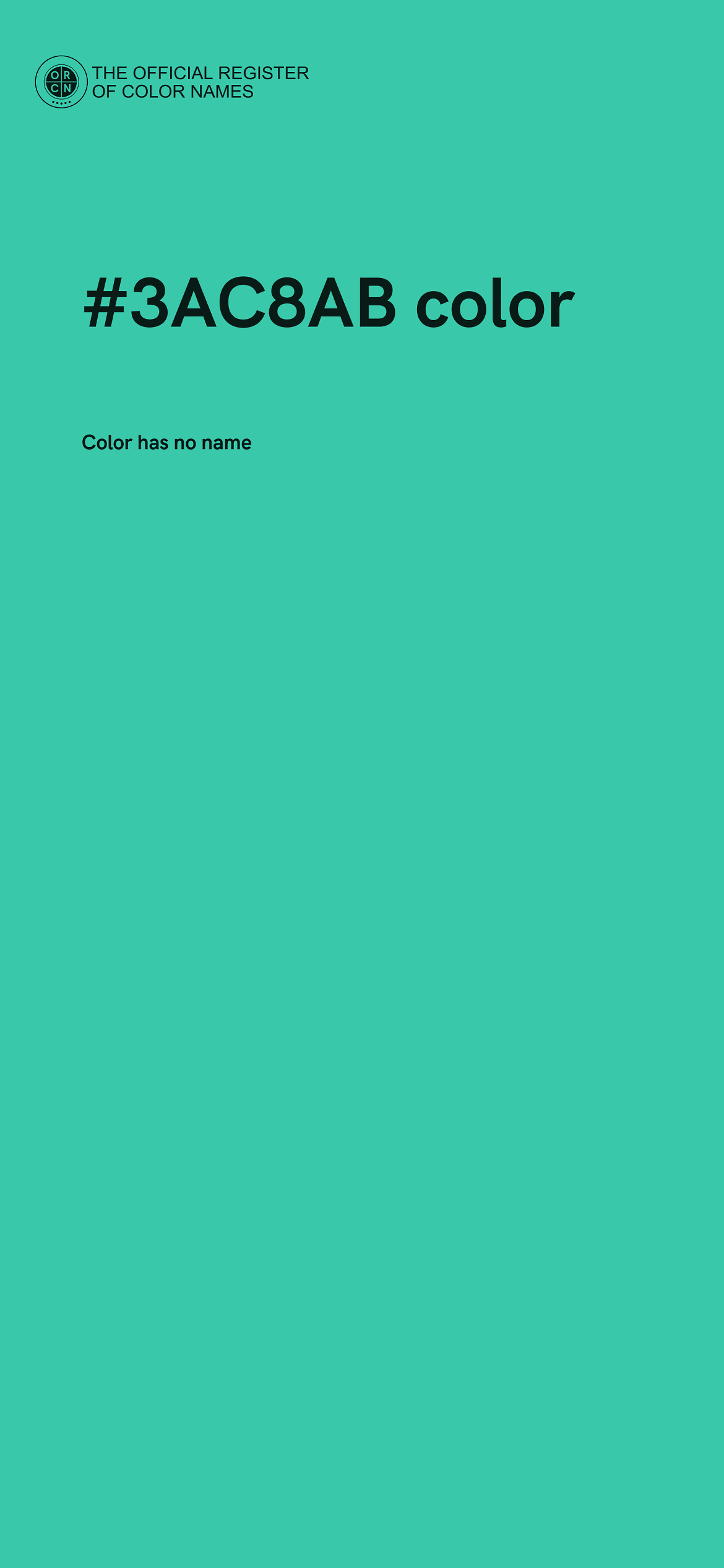 The digital color HEX #3AC8AB belongs to the Cyan Color Family featuring Moderate Saturation (Saturation Family) and Light (Brightness Family).