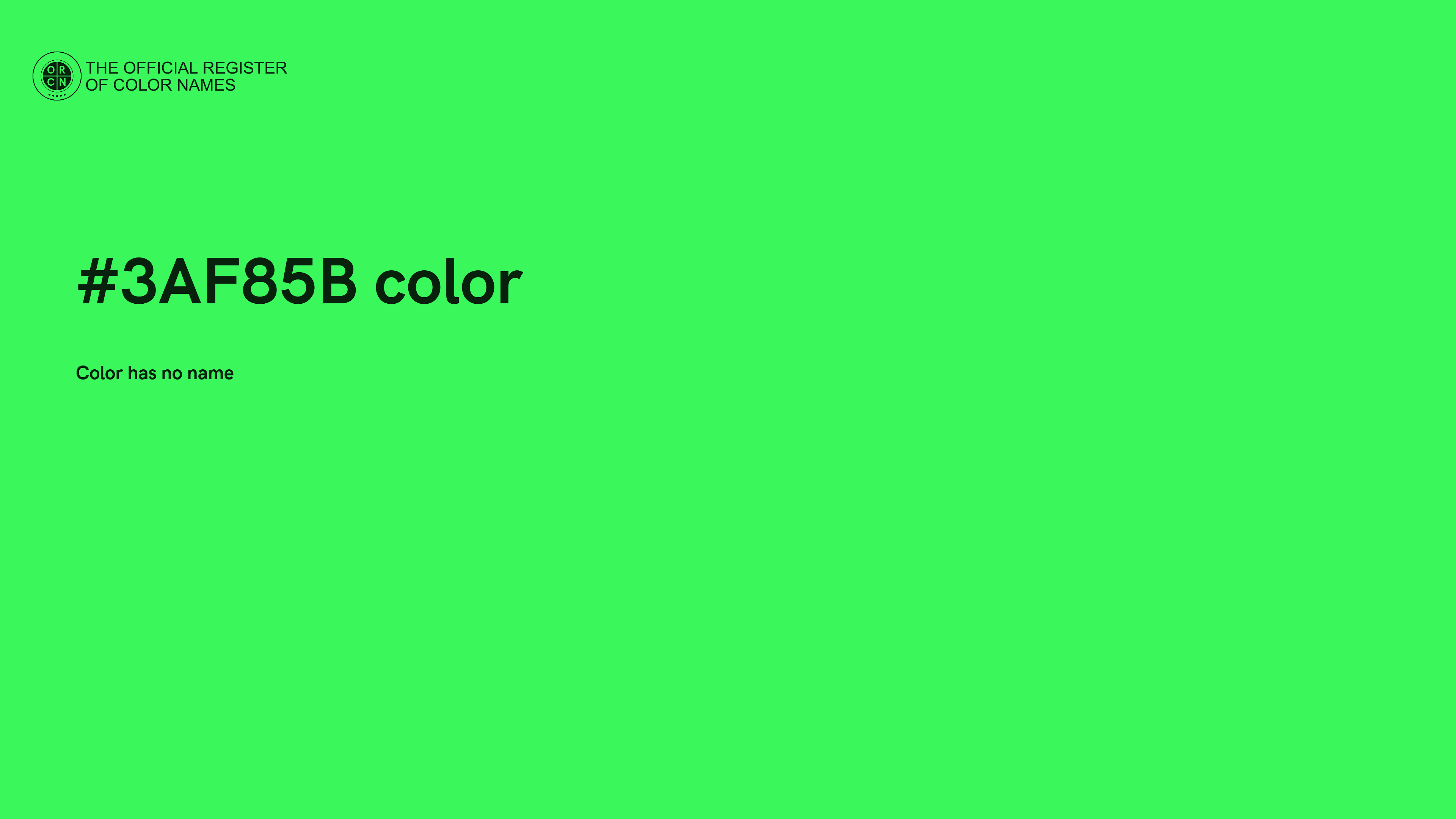The digital color HEX #3AF85B belongs to the Green Color Family featuring Full Saturation (Saturation Family) and Very Light (Brightness Family).