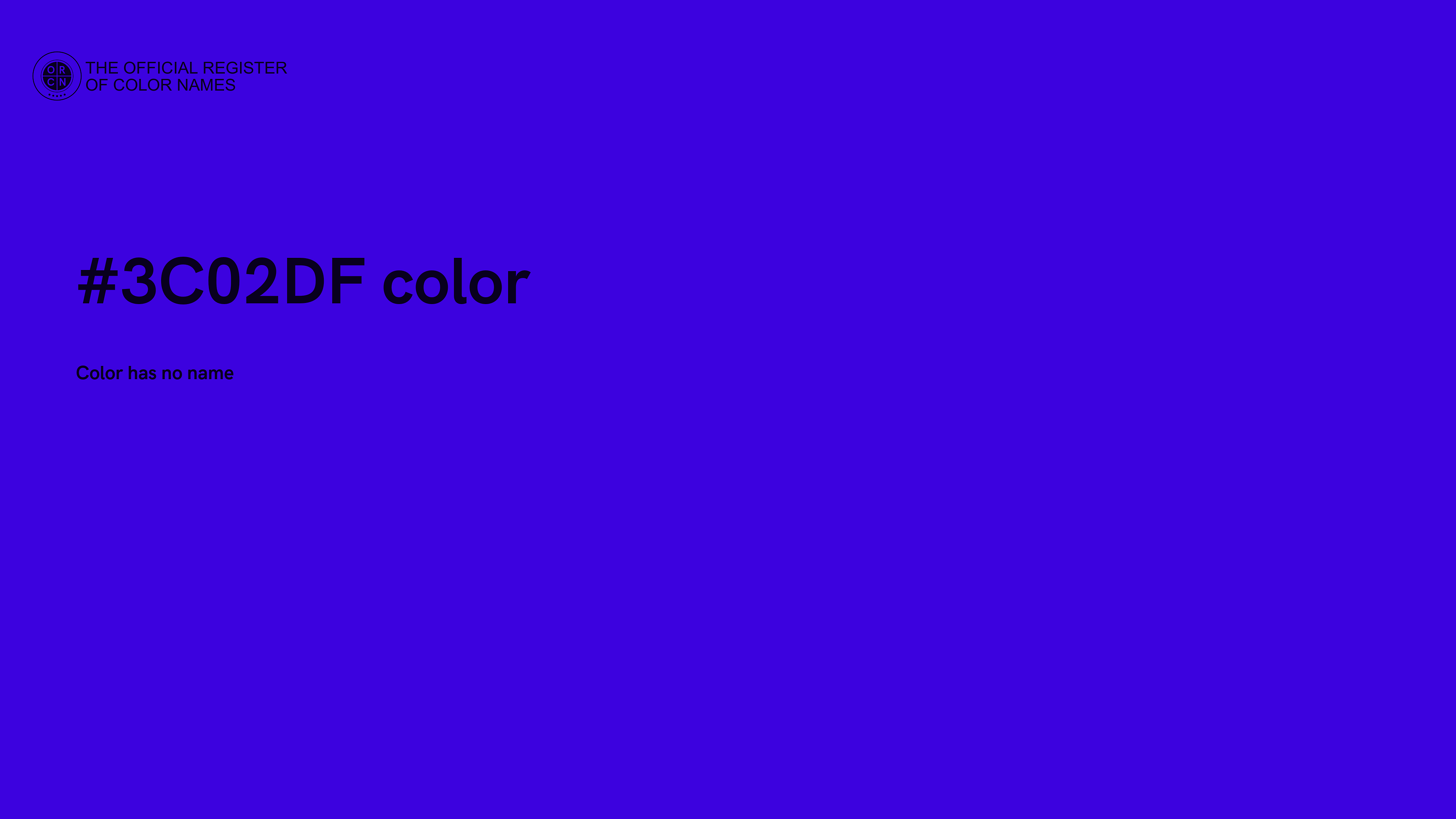 The digital color HEX #3C02DF belongs to the Violet Color Family featuring Full Saturation (Saturation Family) and Light (Brightness Family).