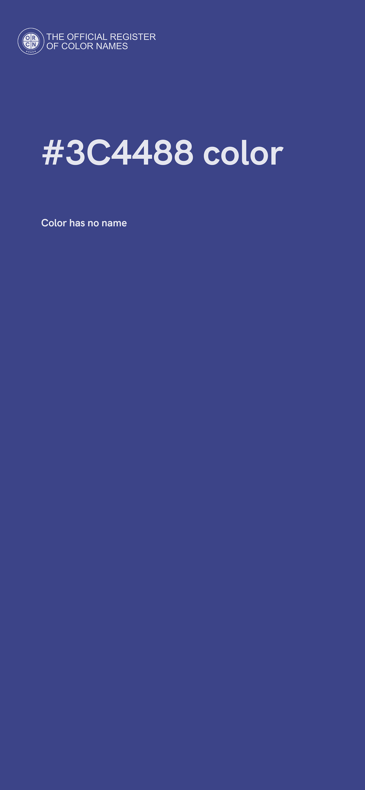 The digital color HEX #3C4488 belongs to the Blue Color Family featuring Mild Saturation (Saturation Family) and Neutral (Brightness Family).