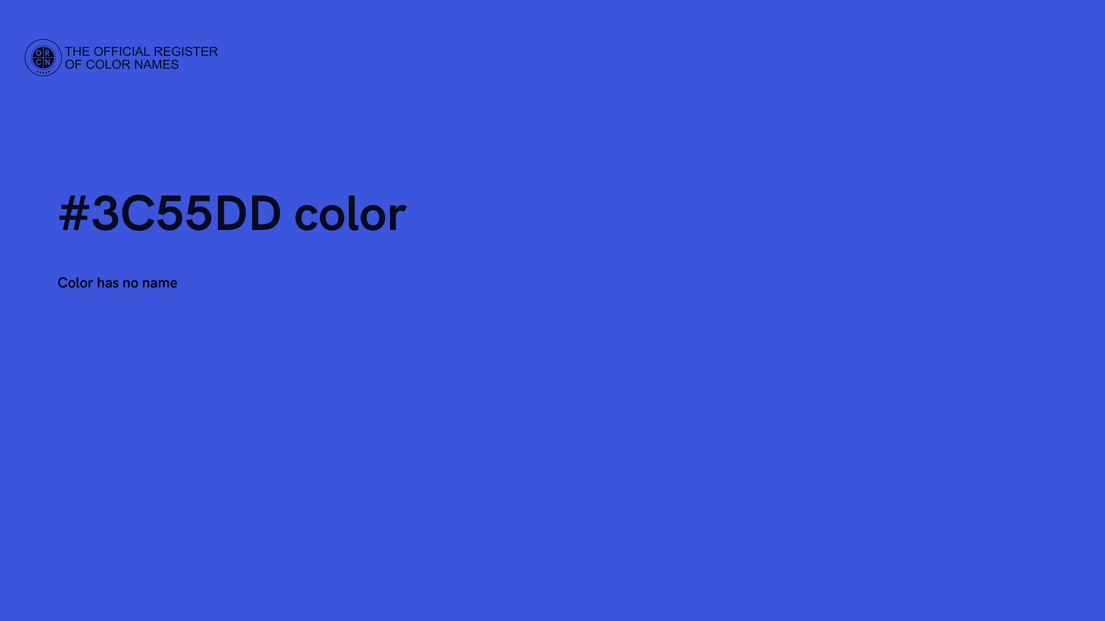 For printing in non digital world, #3C55DD is represented in CMYK as 63 Cyan, 53 Magenta, 0 Yellow, and 13 Black (Key) (C:63 M:53 Y:0 K:13).