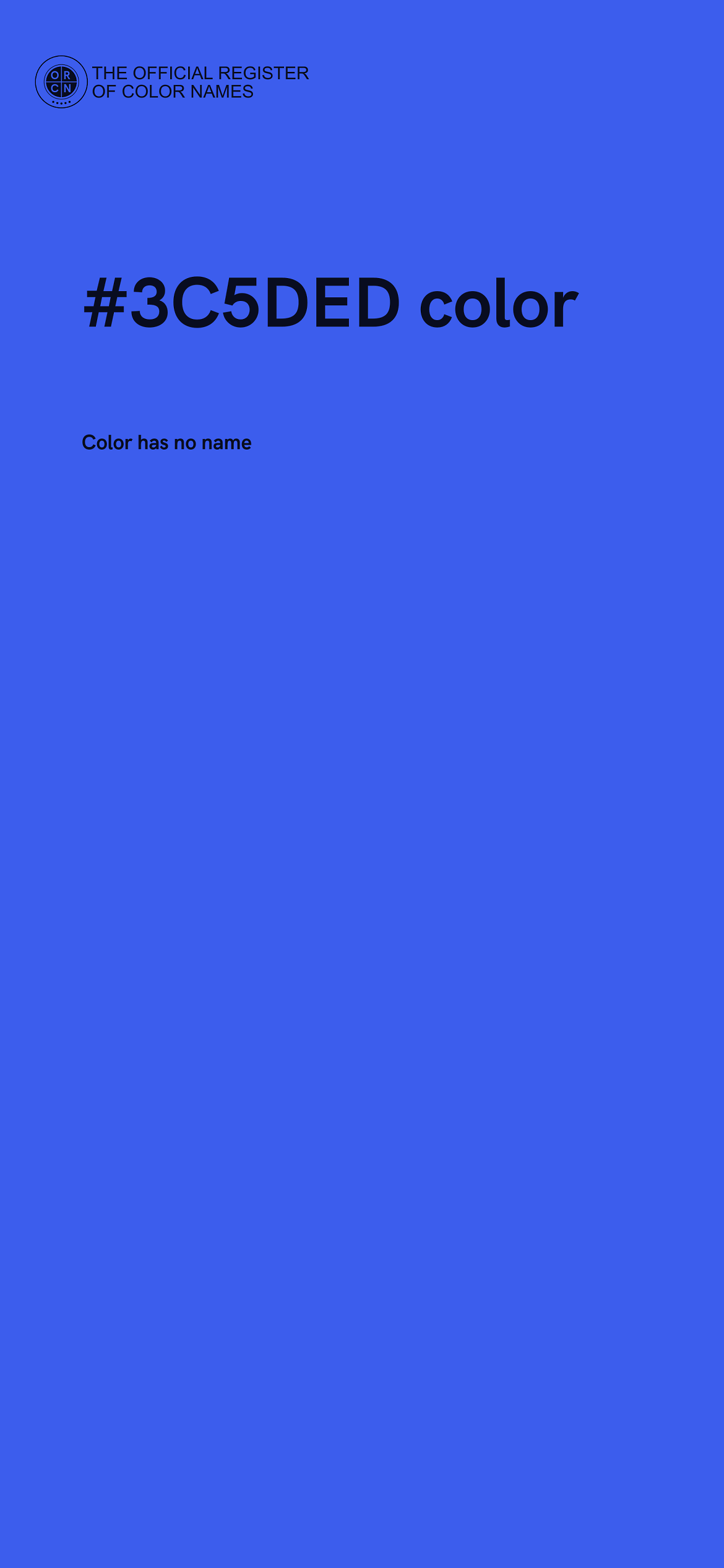 For printing in non digital world, #3C5DED is represented in CMYK as 69 Cyan, 56 Magenta, 0 Yellow, and 7 Black (Key) (C:69 M:56 Y:0 K:7).