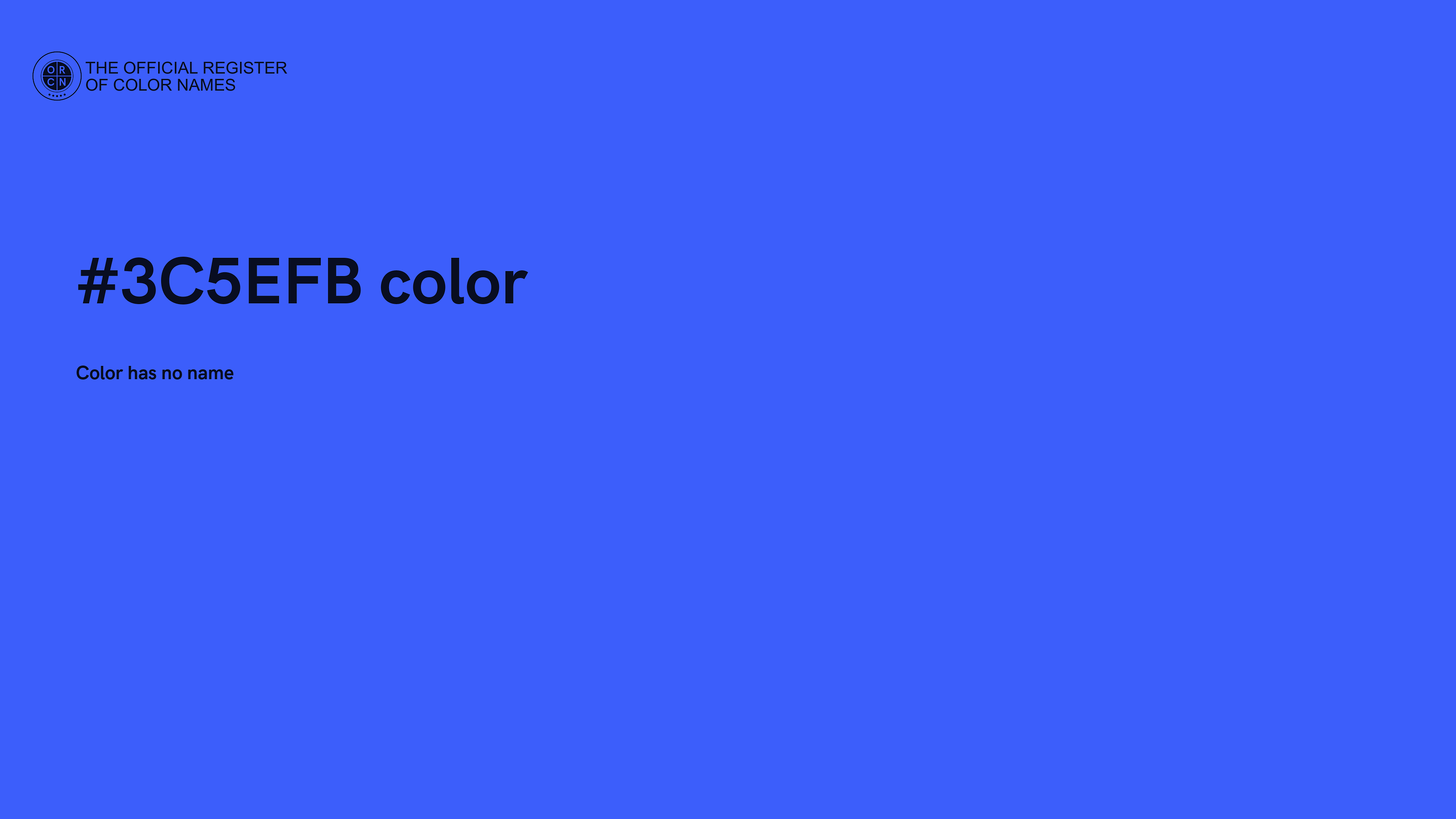 The digital color HEX #3C5EFB belongs to the Blue Color Family featuring Full Saturation (Saturation Family) and Very Light (Brightness Family).