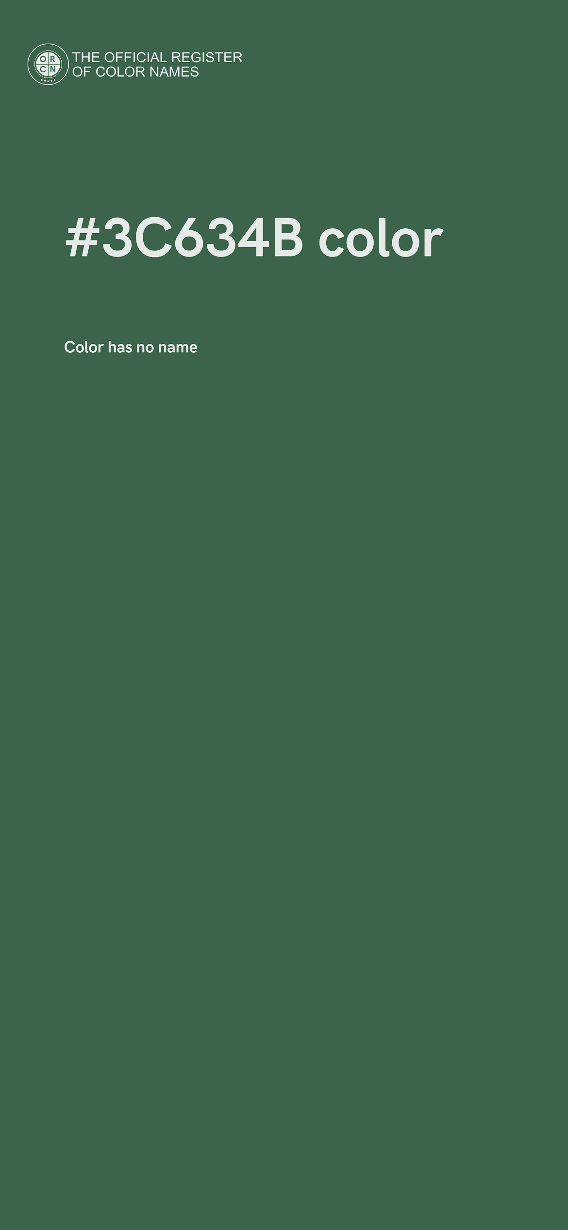 The digital color HEX #3C634B belongs to the Spring Green Color Family featuring Mild Saturation (Saturation Family) and Neutral (Brightness Family).