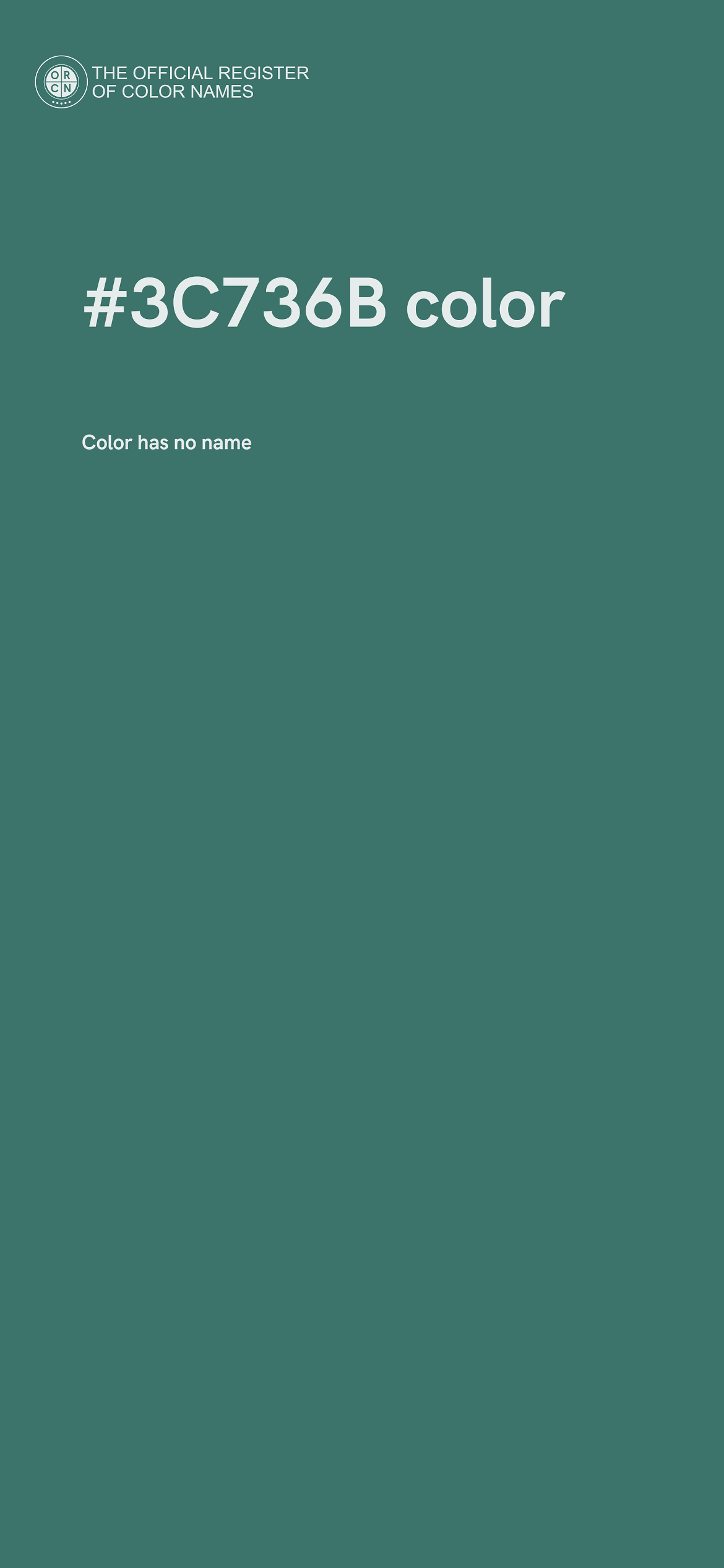 The digital color HEX #3C736B belongs to the Cyan Color Family featuring Mild Saturation (Saturation Family) and Neutral (Brightness Family).