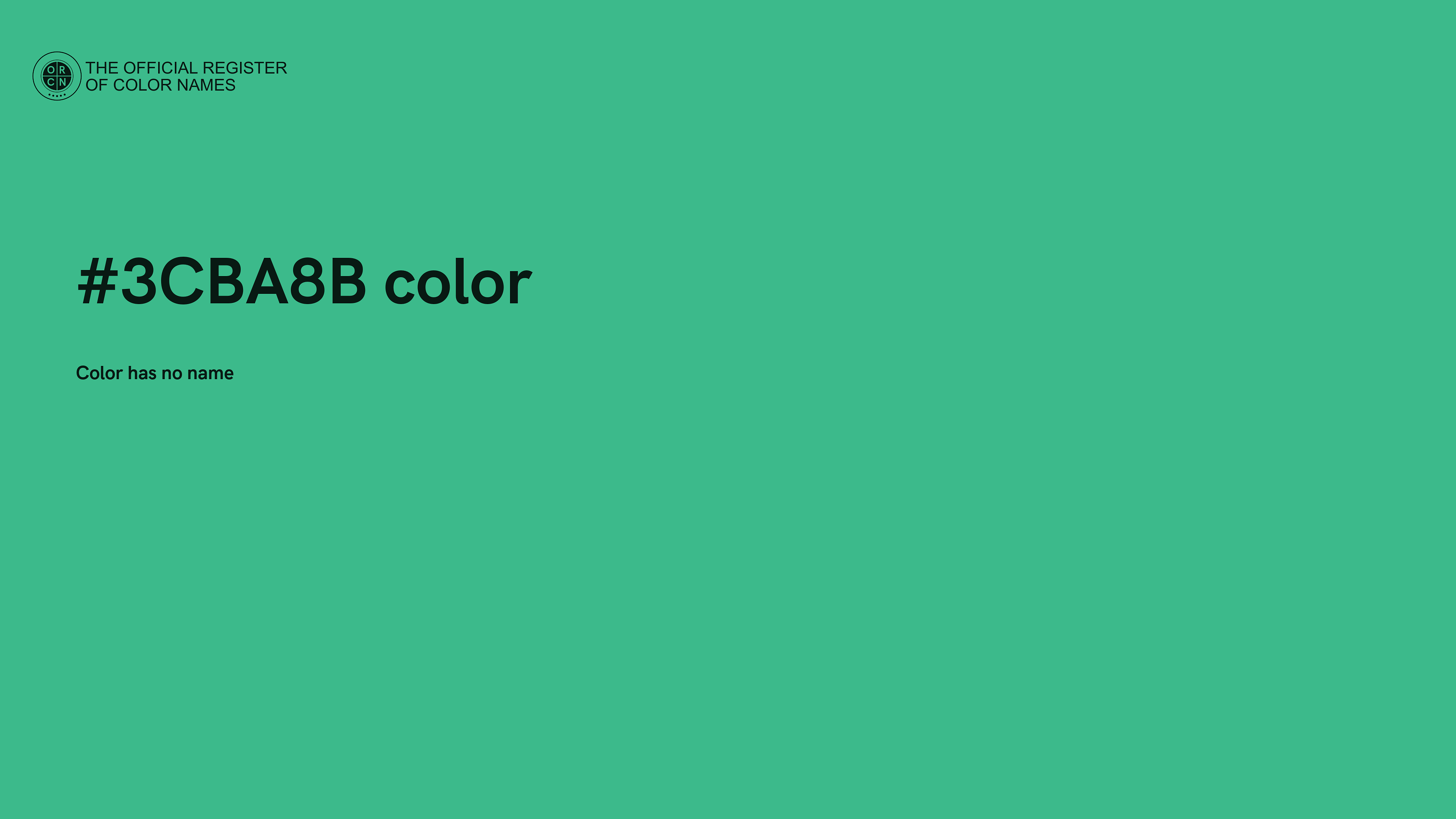 The digital color HEX #3CBA8B belongs to the Spring Green Color Family featuring Moderate Saturation (Saturation Family) and Light (Brightness Family).